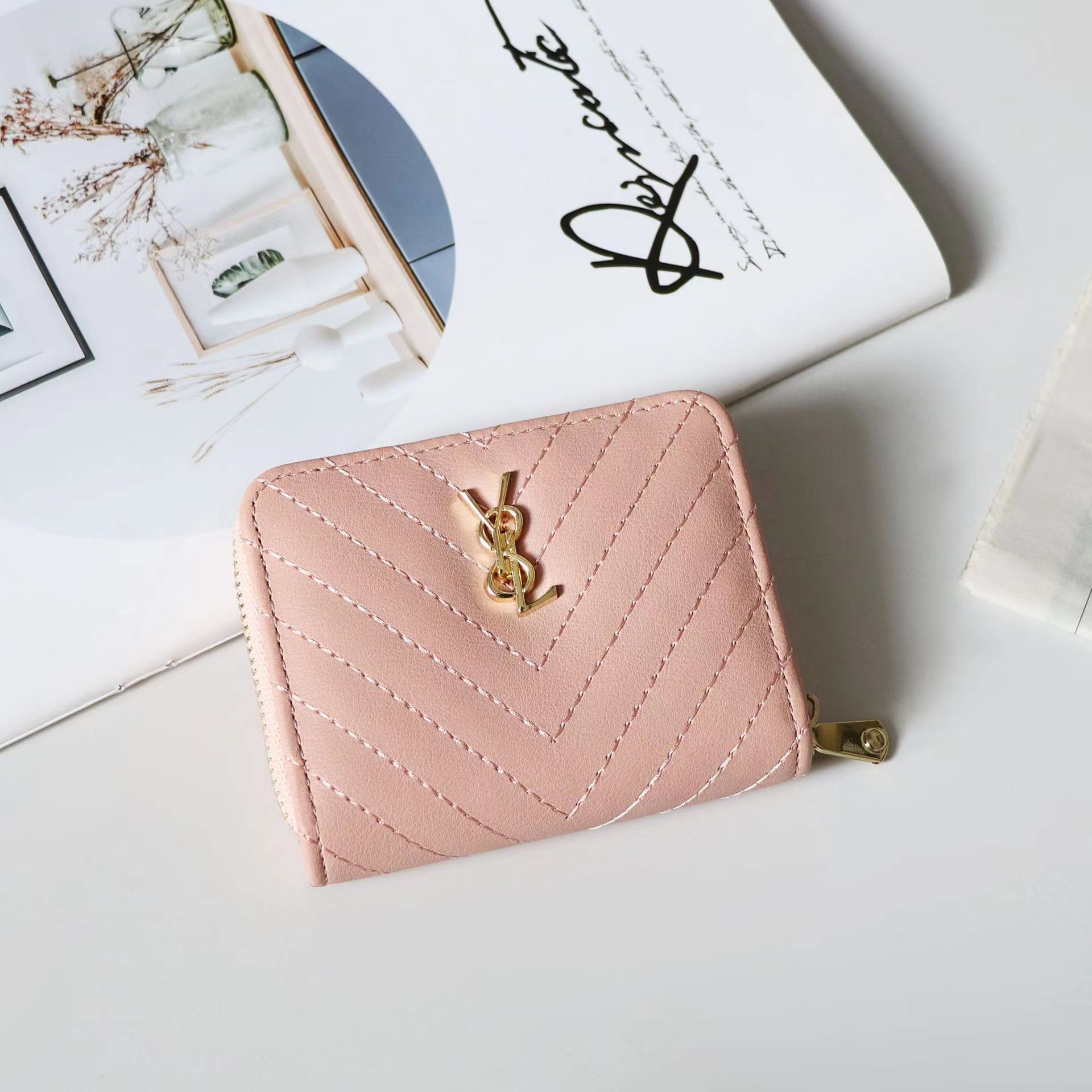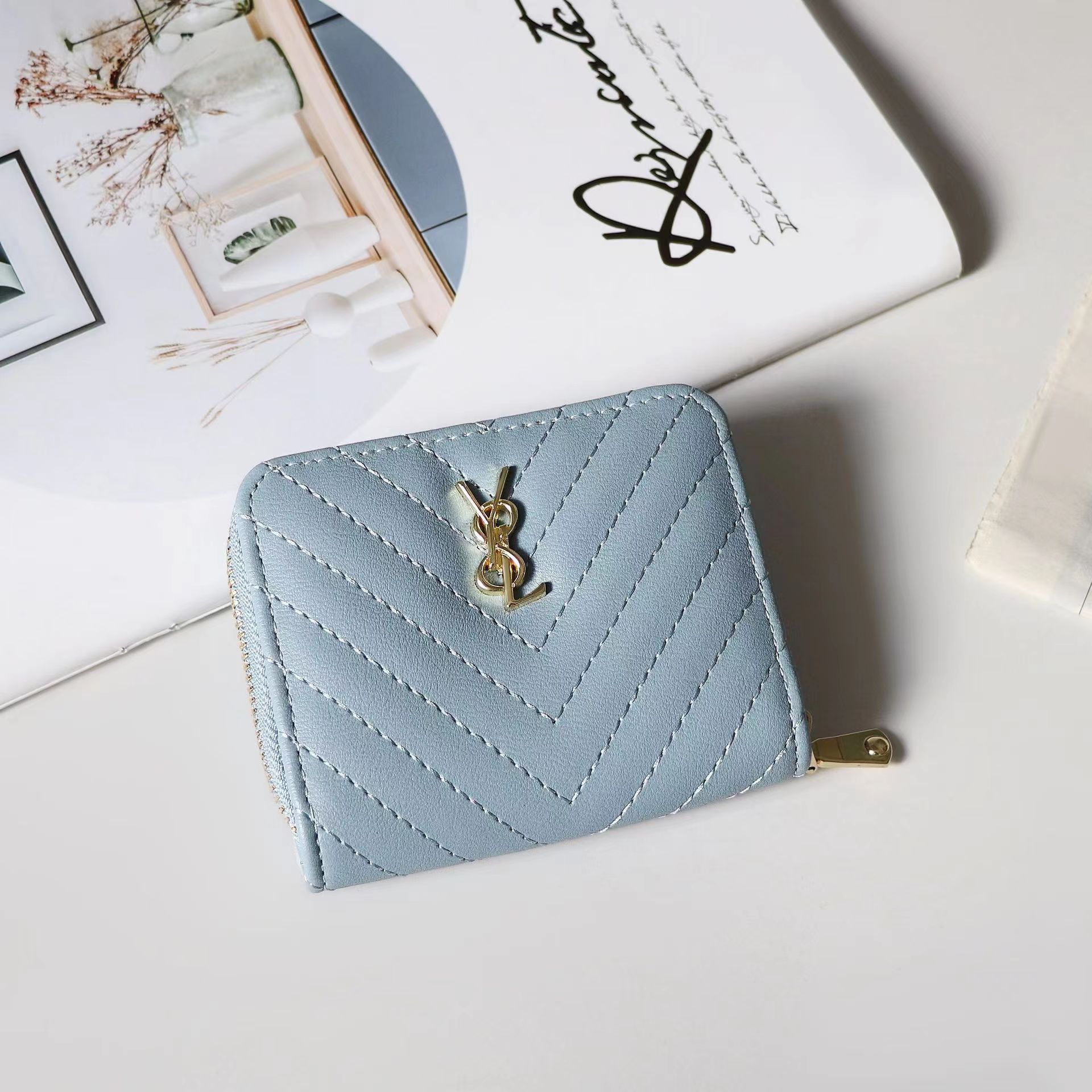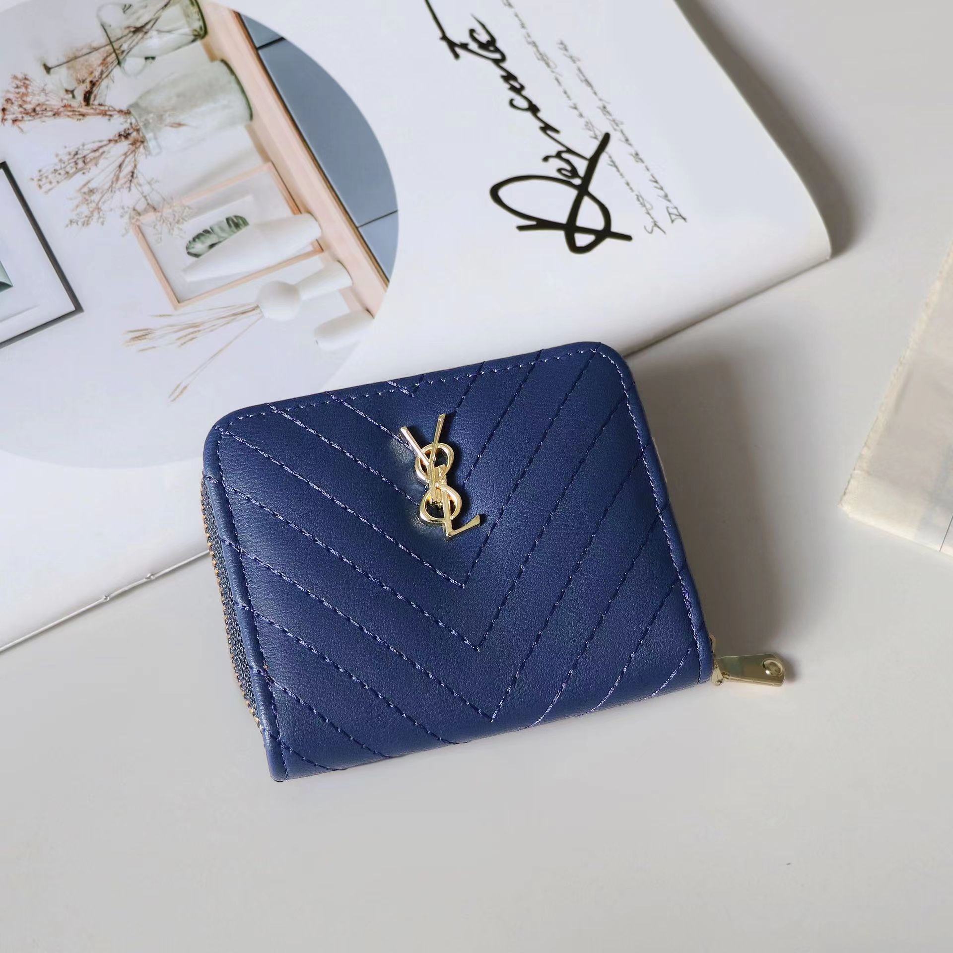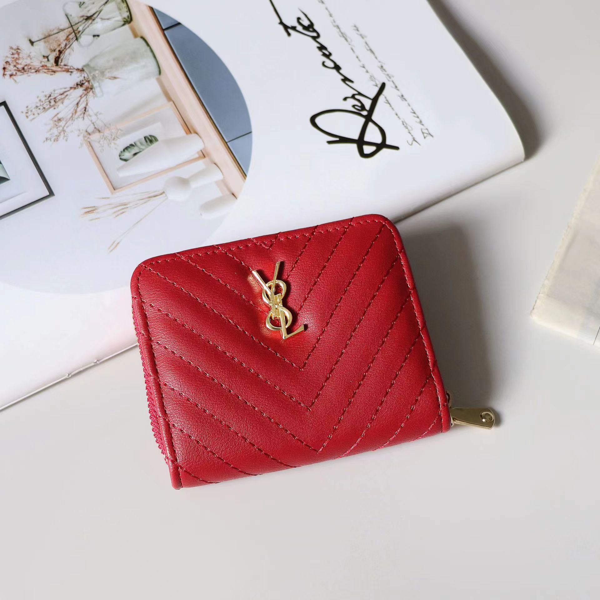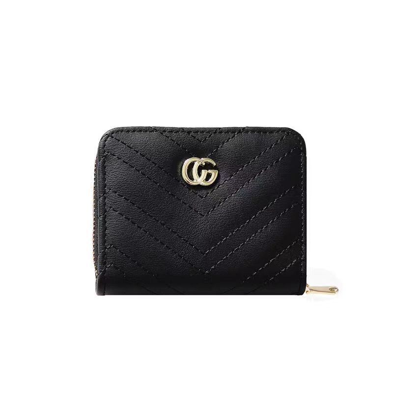 欧美大牌钱包女短款绣花拉链钱夹多卡位复古经典卡包拉链皮夹