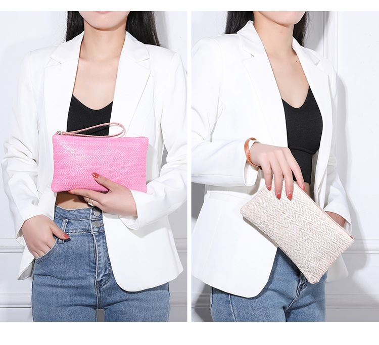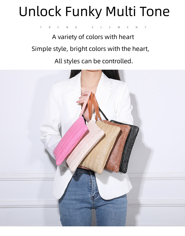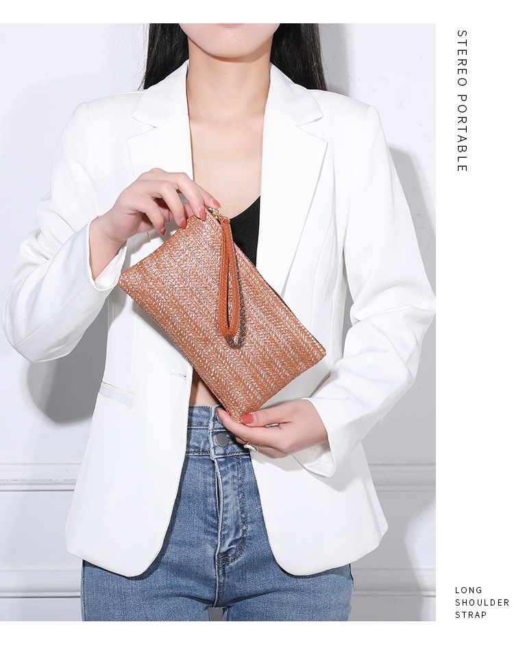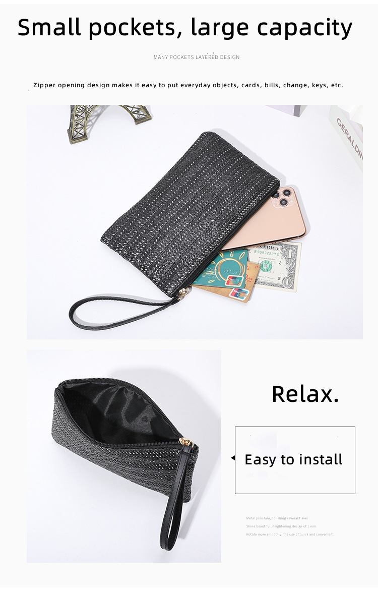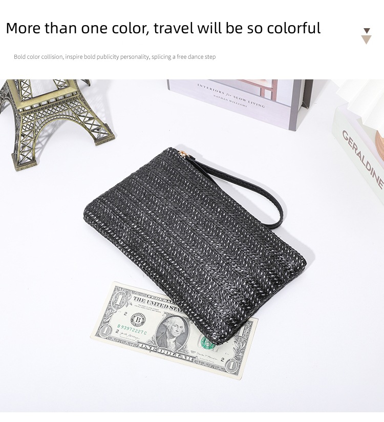 亚马逊热销女士休闲旅行草编包时尚简约大容量女士中长款钱包手拿