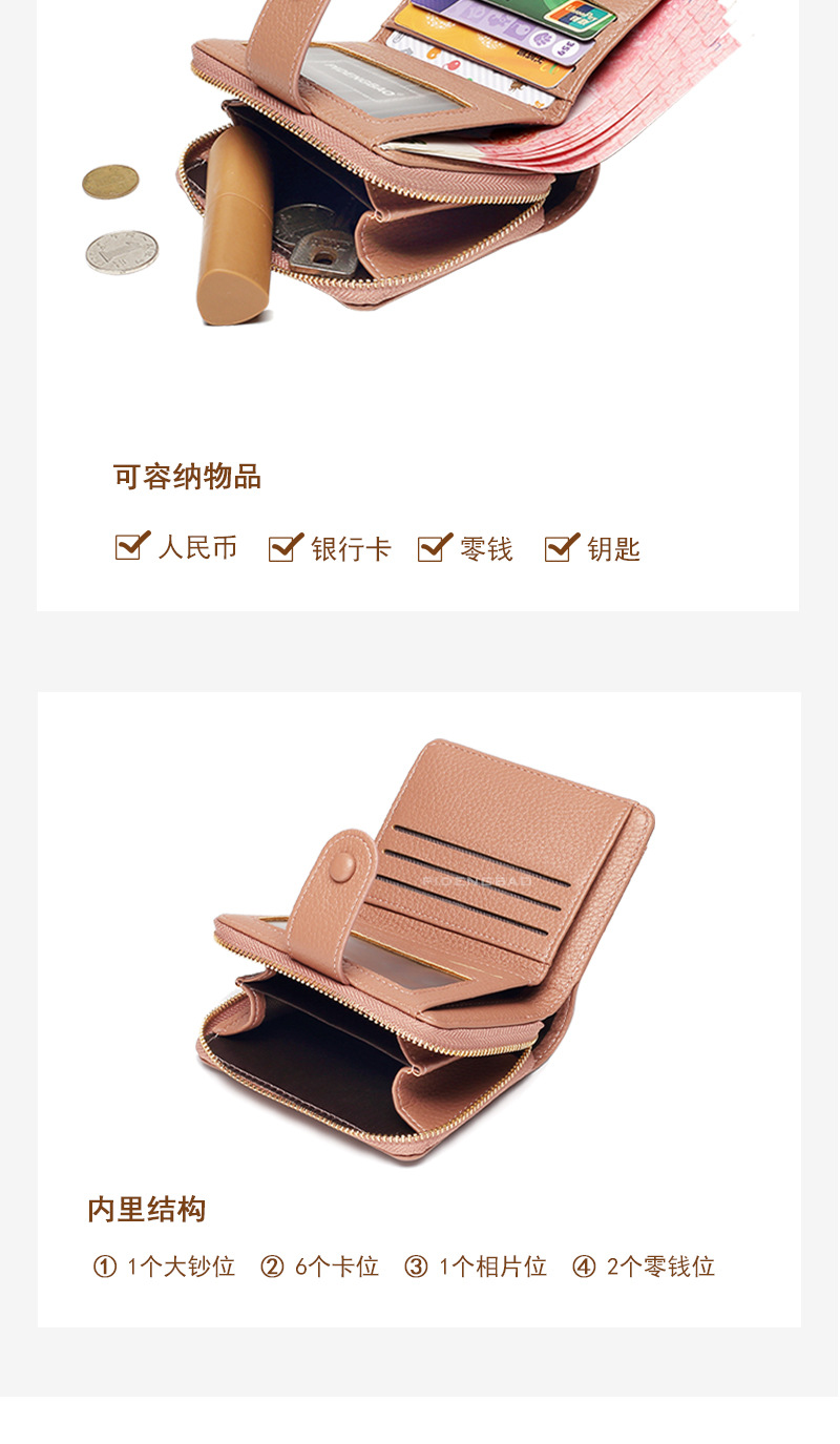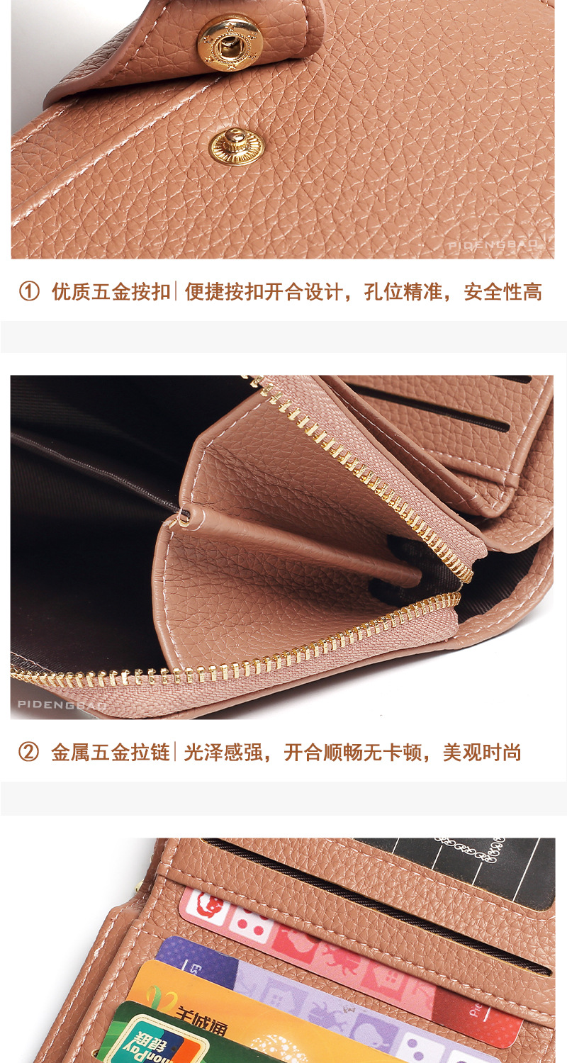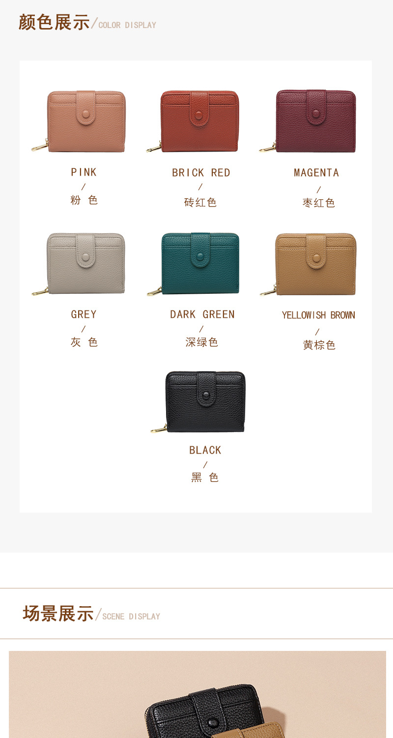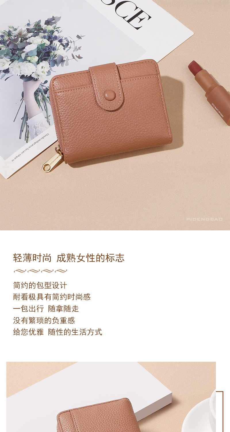 跨境新款拉链零钱包短款钱包 女时尚纯色荔枝纹多卡位钱夹wallet