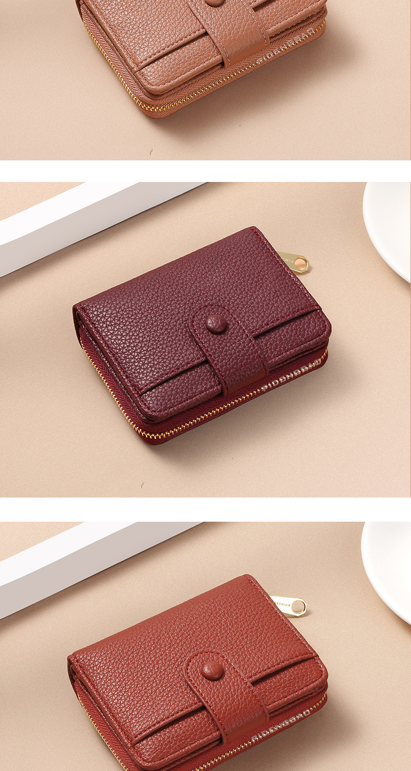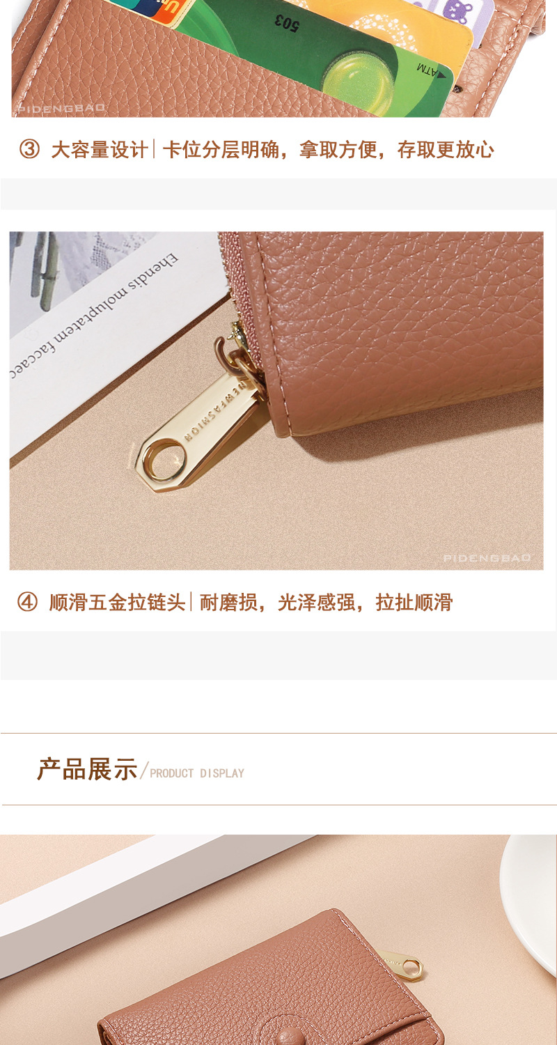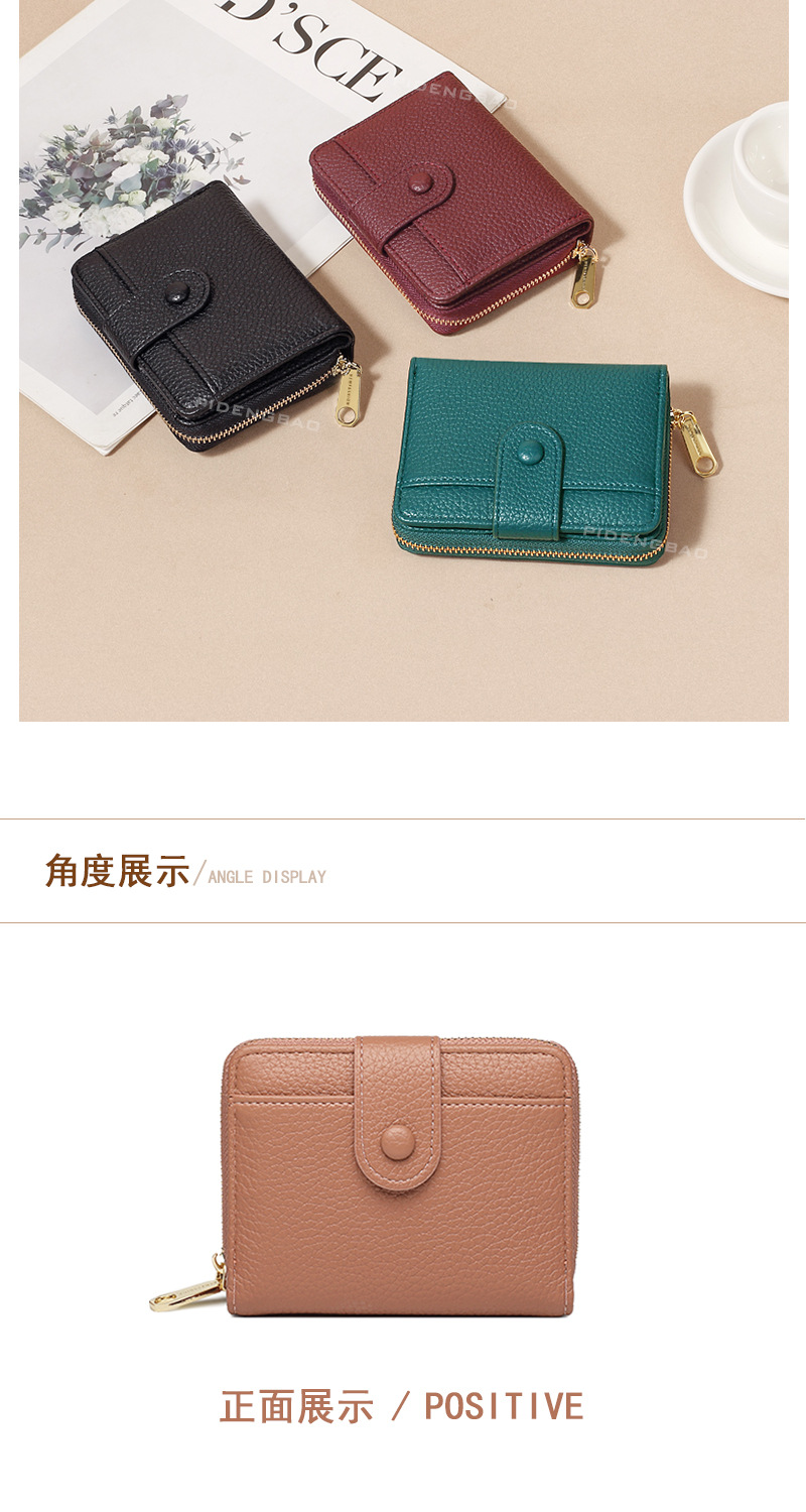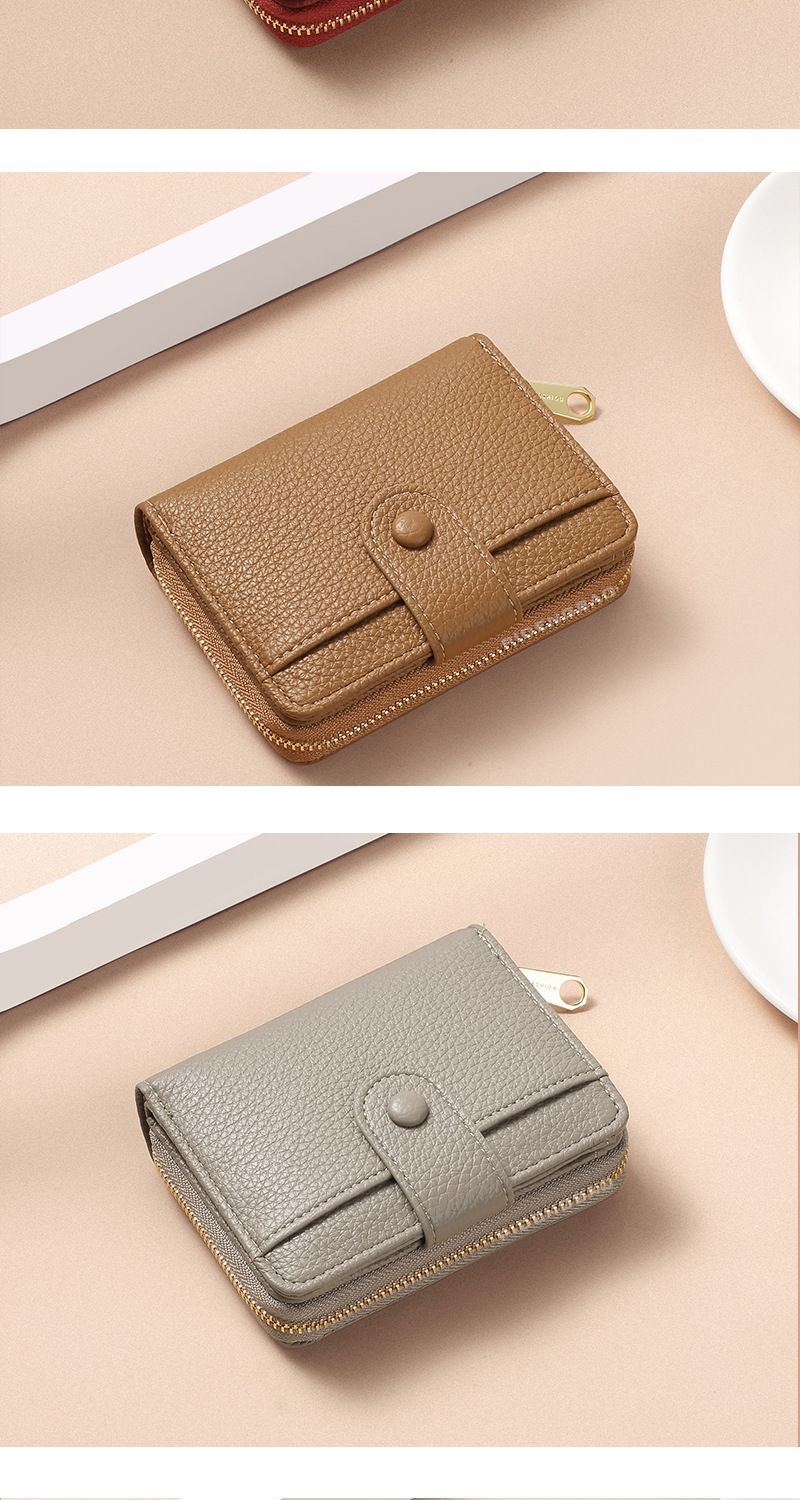 跨境新款拉链零钱包短款钱包 女时尚纯色荔枝纹多卡位钱夹wallet