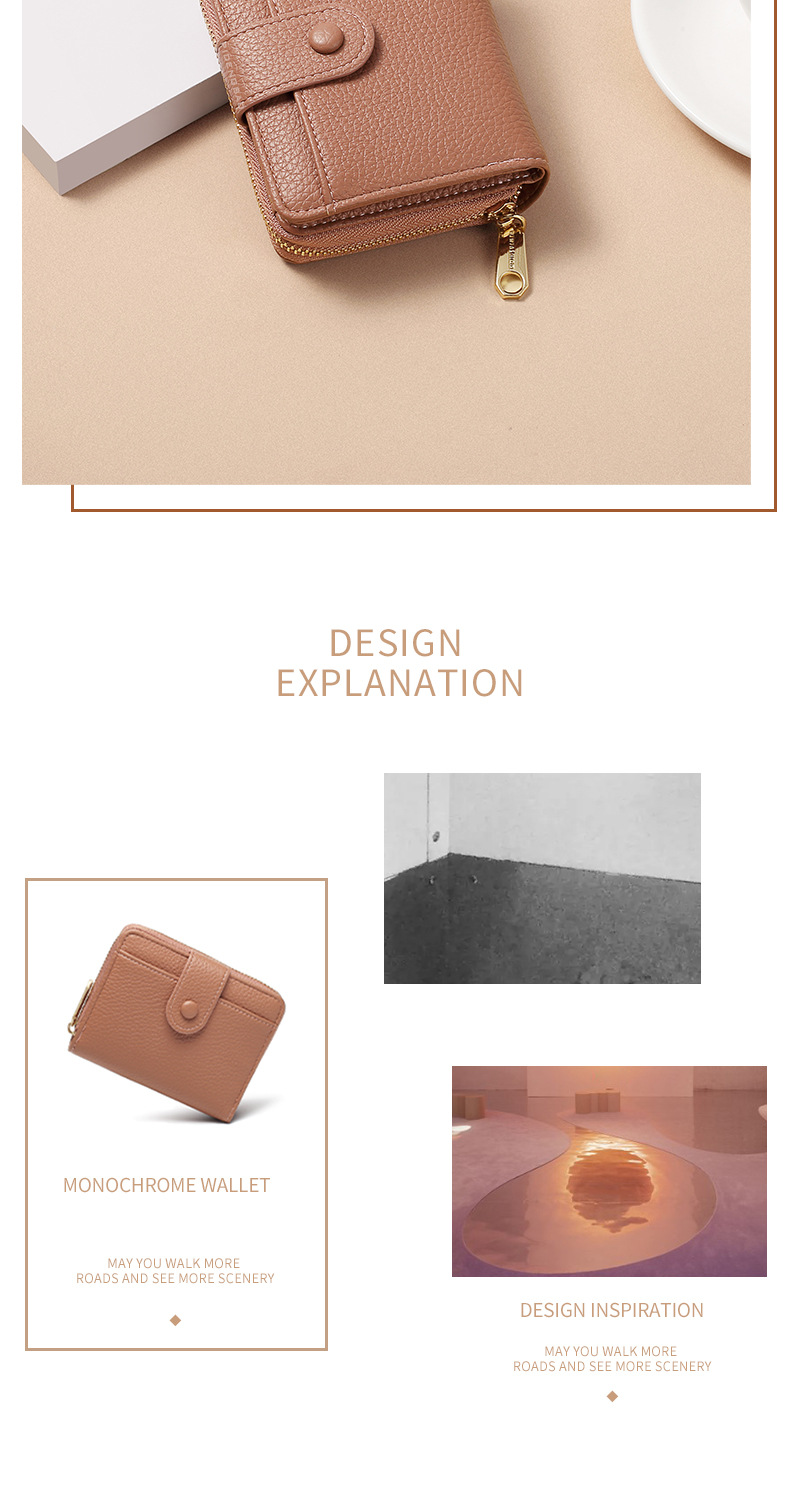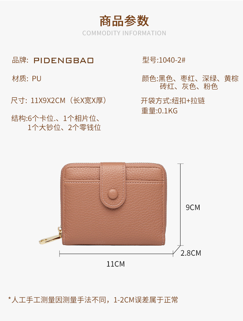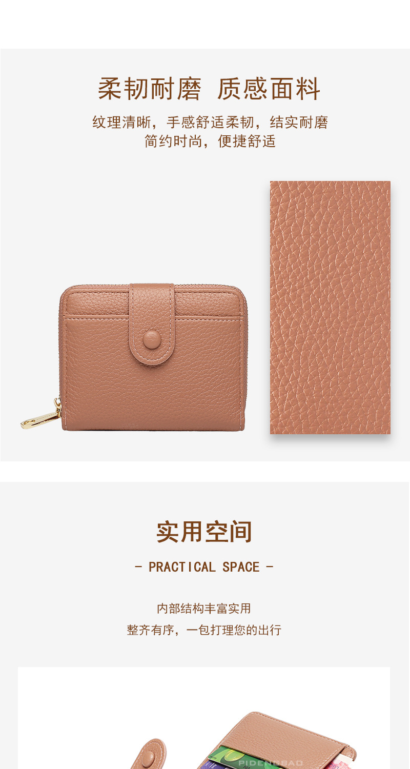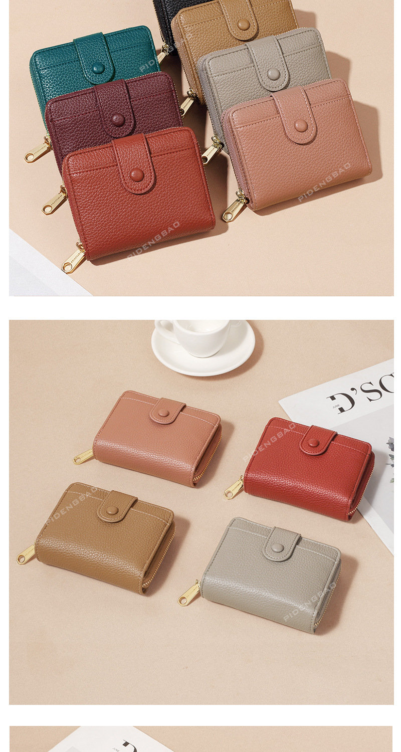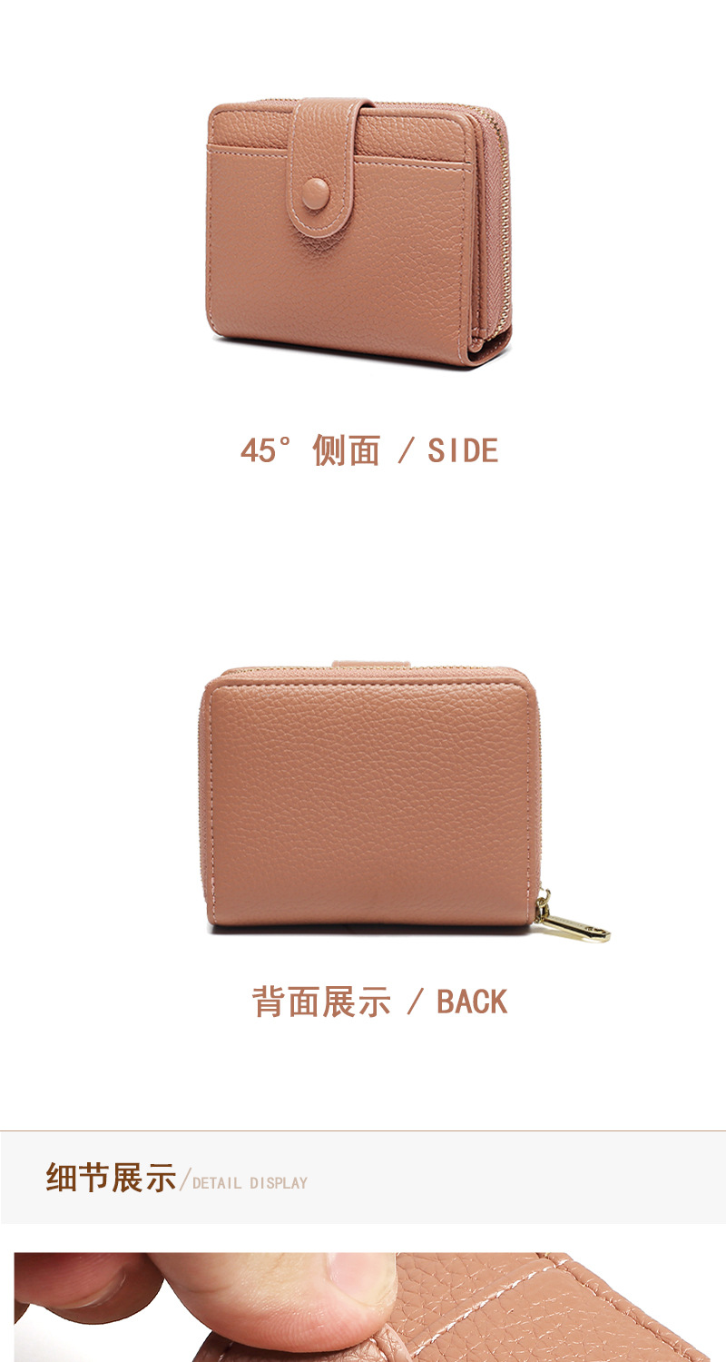跨境新款拉链零钱包短款钱包 女时尚纯色荔枝纹多卡位钱夹wallet
