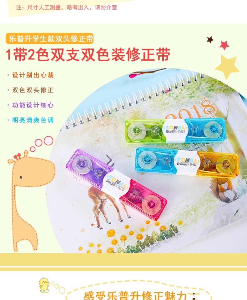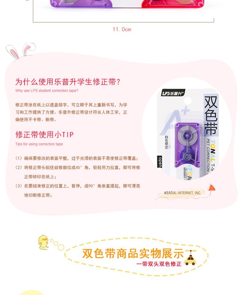 乐普升9932双头修正带双色带芯大容量护眼型涂改带小学生改正带