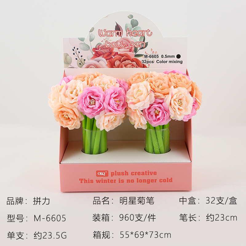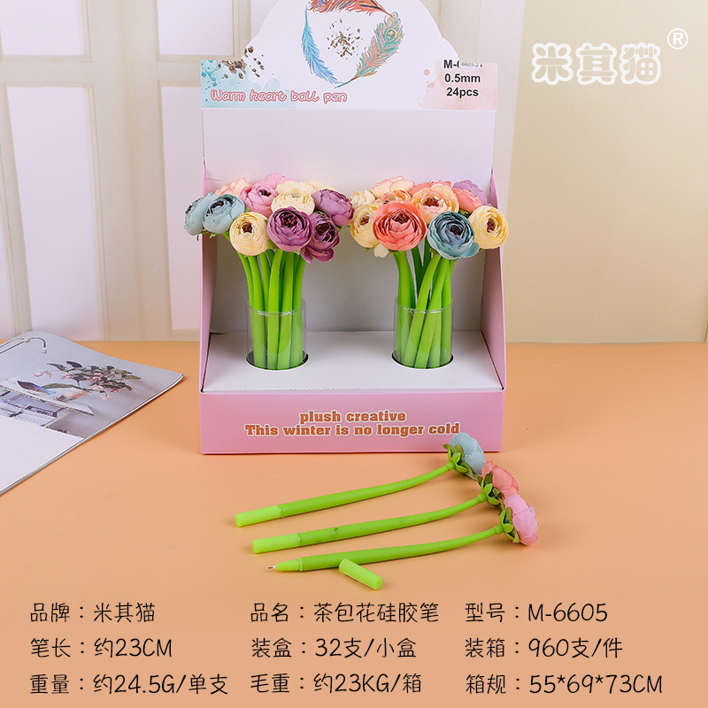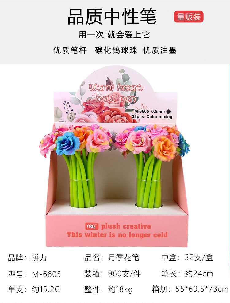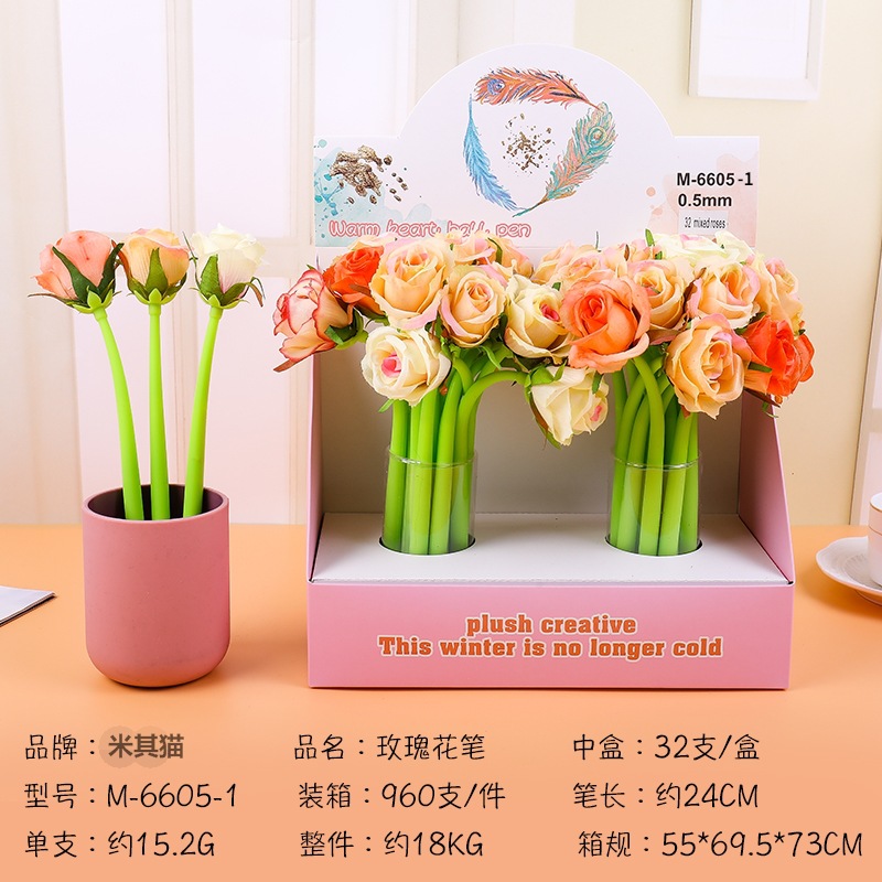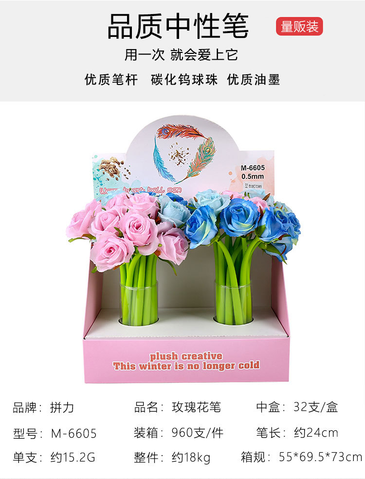 创意玫瑰花中性笔0.5mm教师节日礼物 七彩多色造型朵签字书写黑笔
