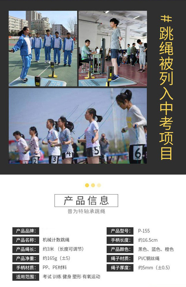 中学生体育中考专用计数跳绳运动训练竞速负重可调节比赛专业跳绳