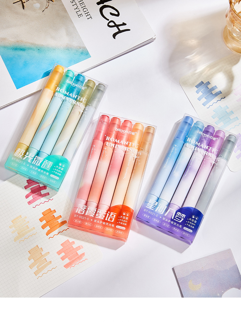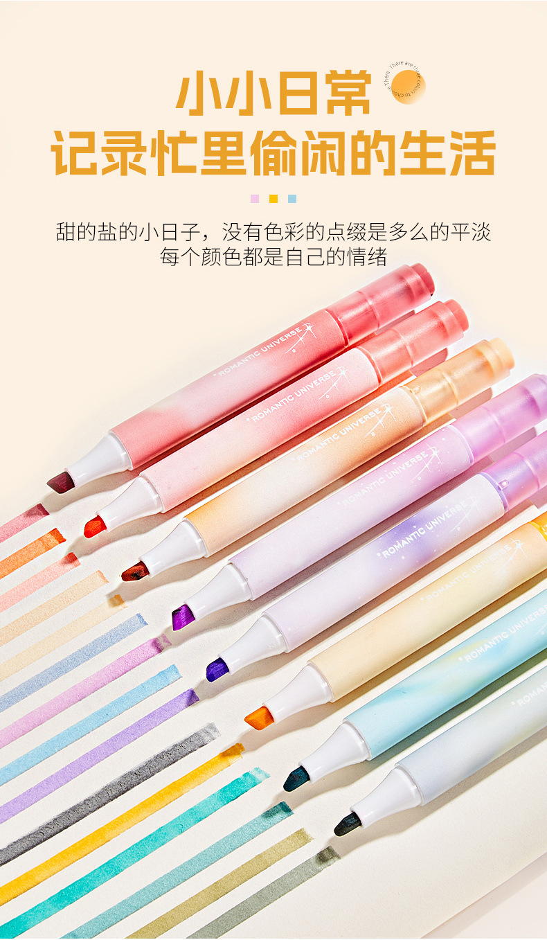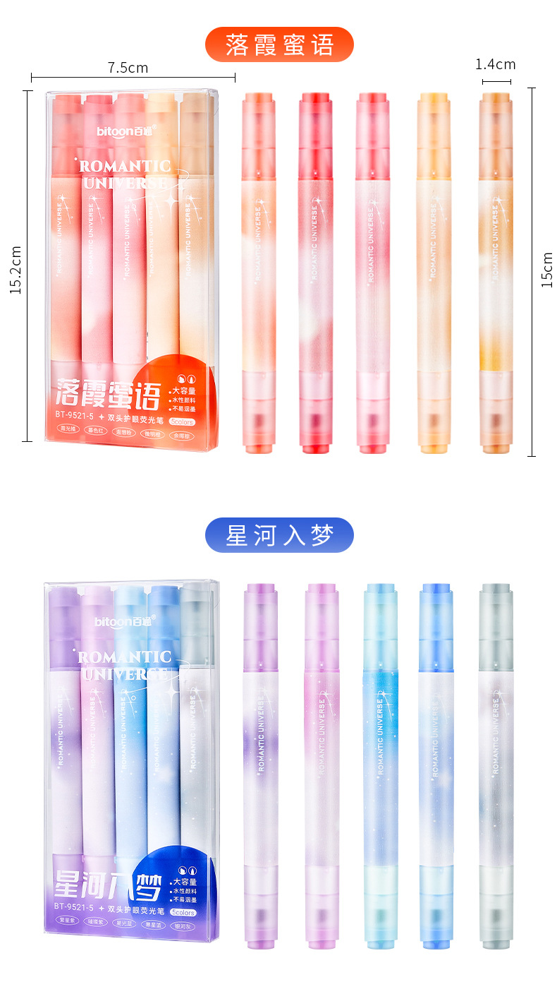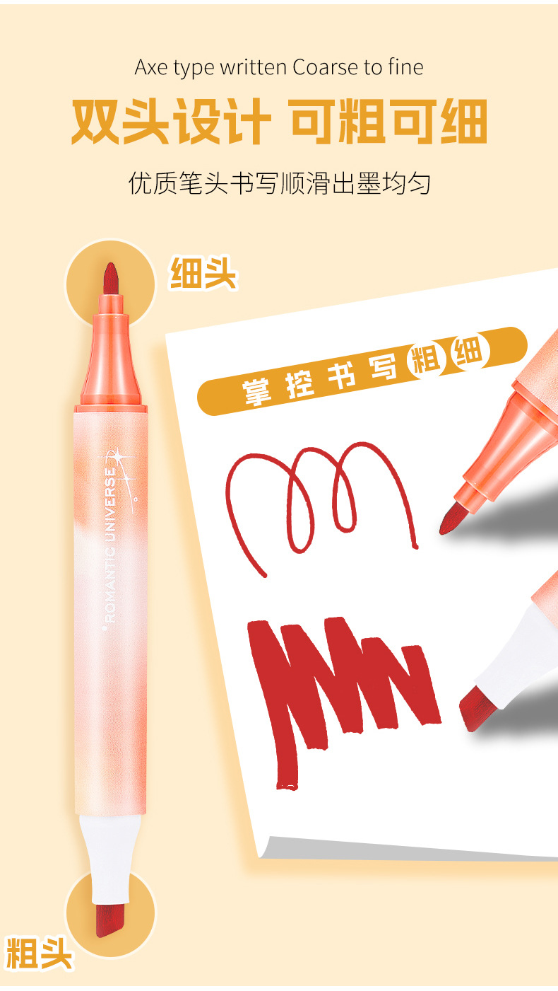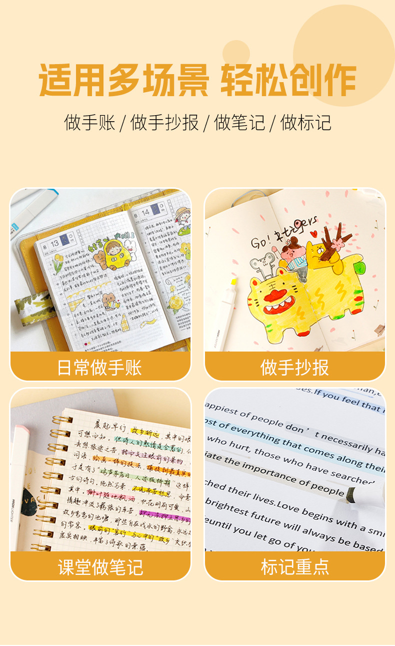 百通9521韩版ins手账笔彩色记号笔大容量划重点标记双头荧光笔
