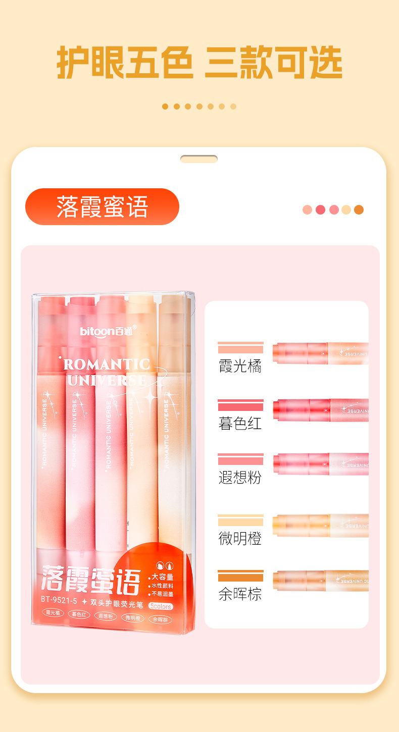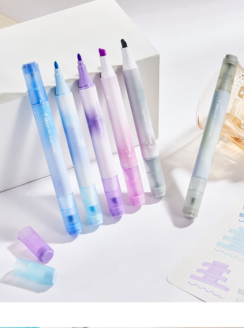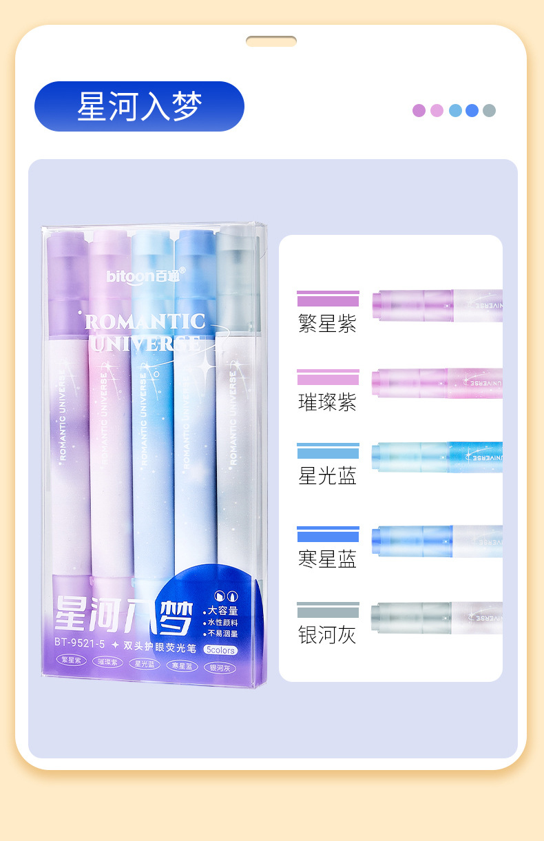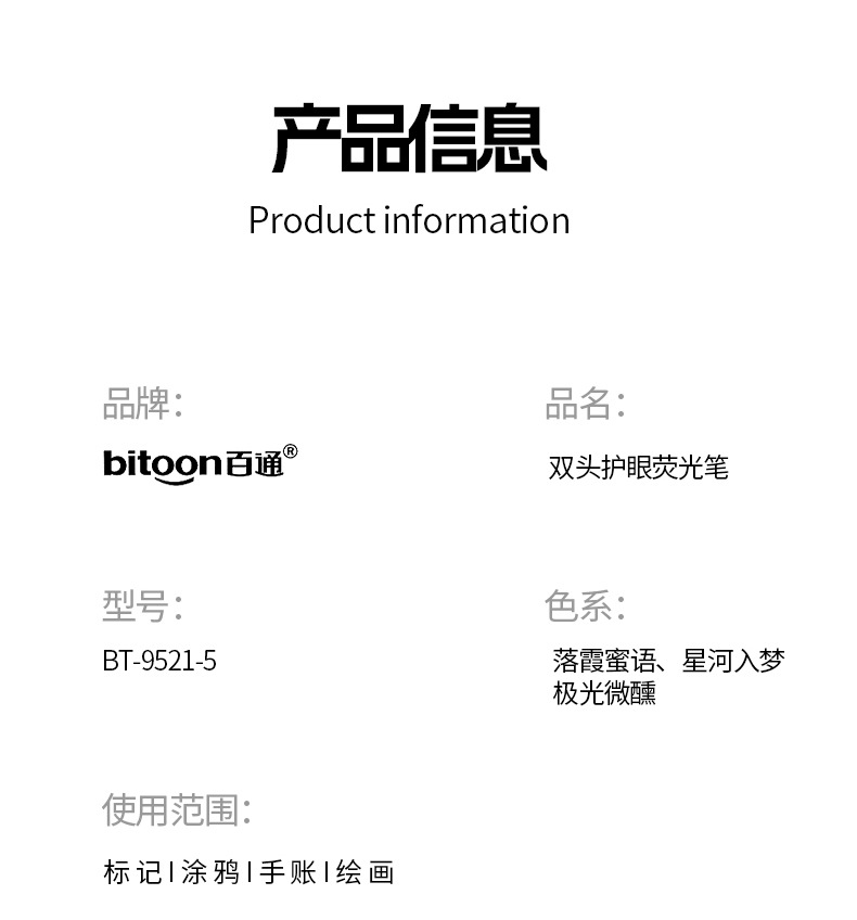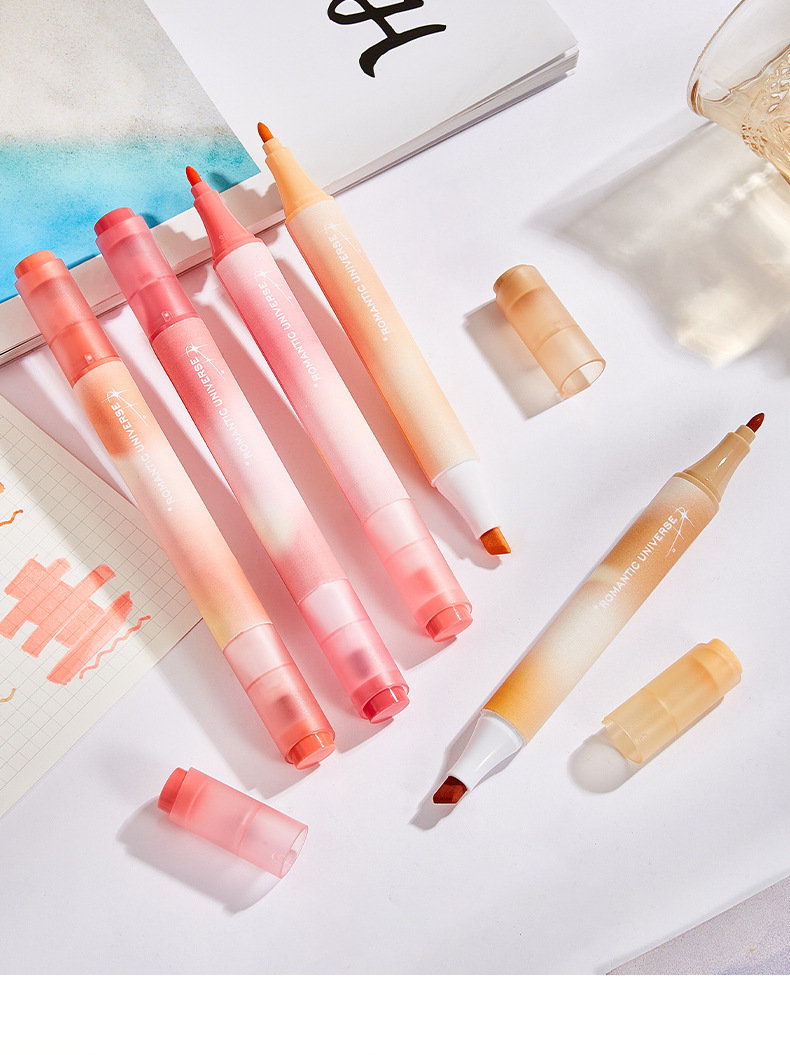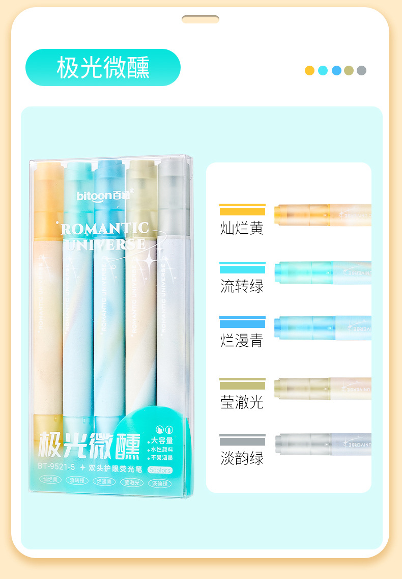 百通9521韩版ins手账笔彩色记号笔大容量划重点标记双头荧光笔