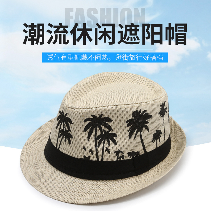 三亚风爵士礼帽男女潮时尚遮阳帽休闲沙滩儿童草帽度假景点亲子帽