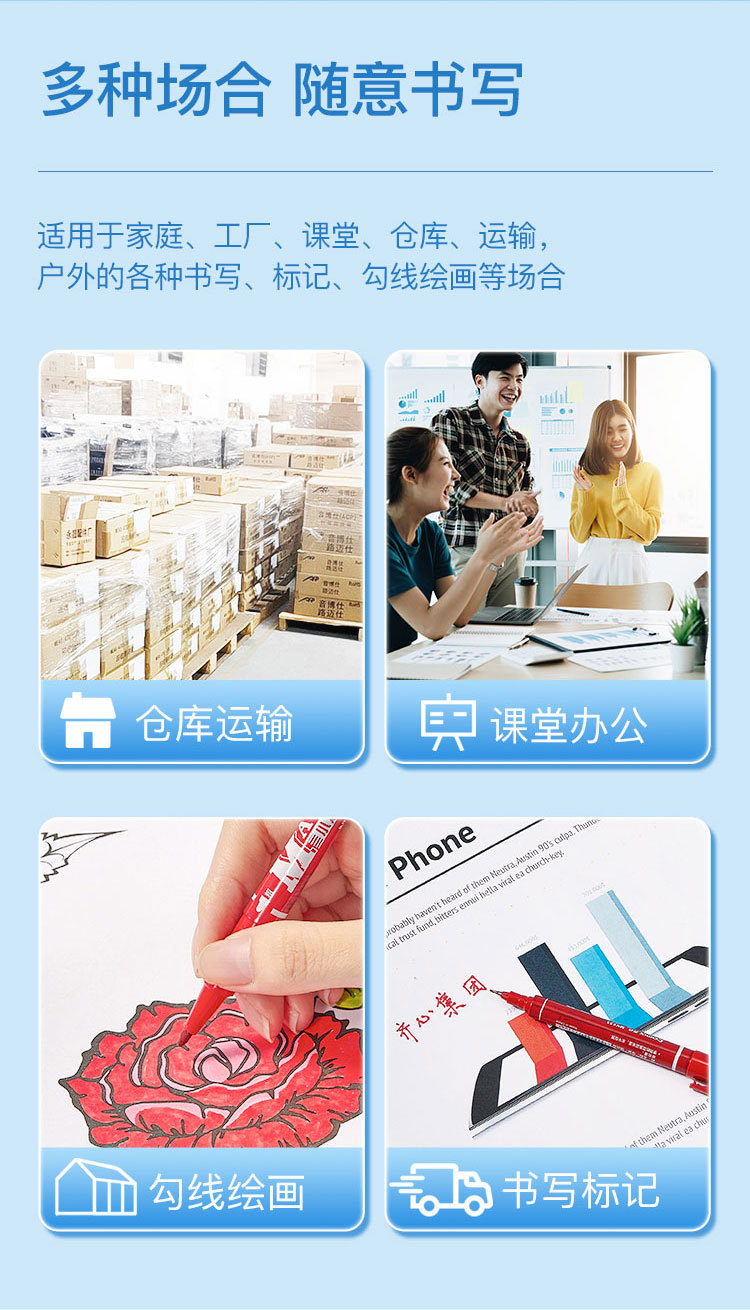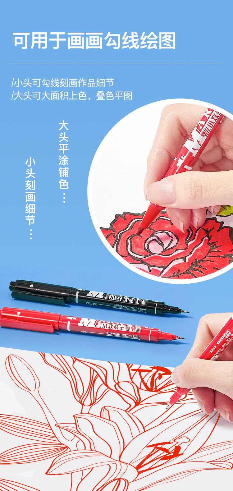 齐心记号笔勾线笔大小双头油性笔中小学生绘画MK833