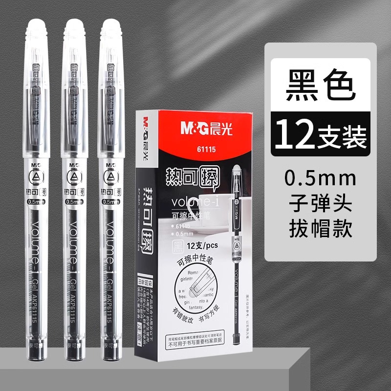 晨光AKP61115热可擦中性笔0.5mm子弹头学生用书写速干拔插款水笔