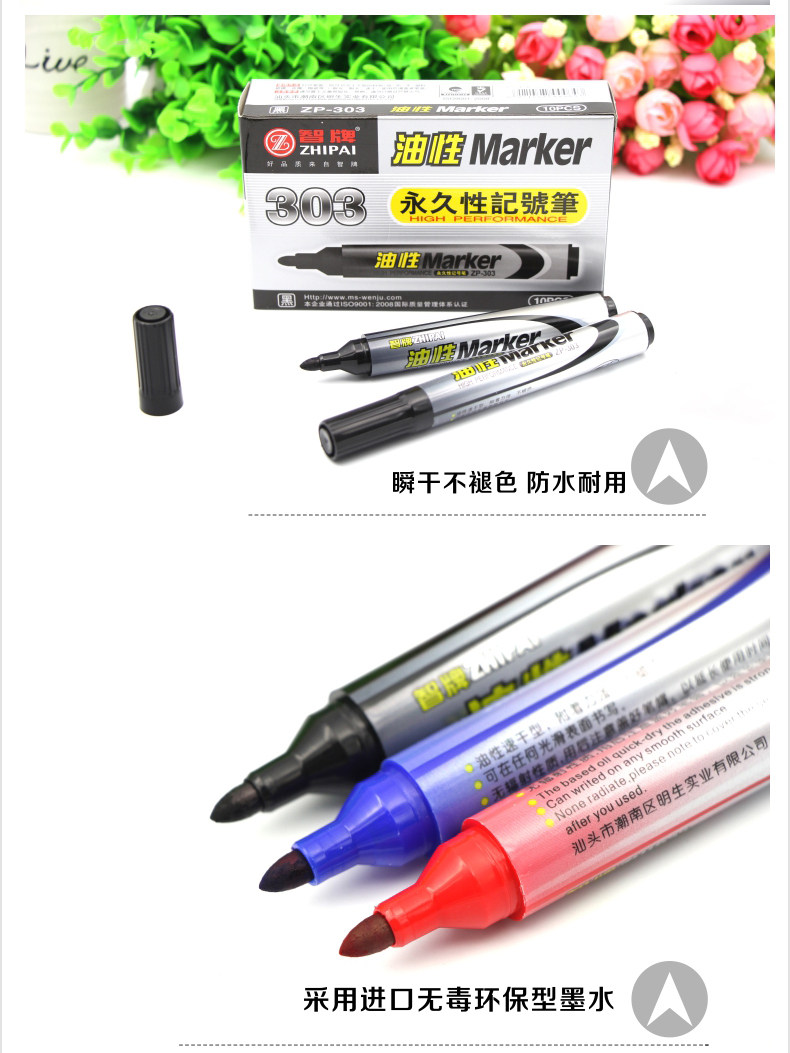智牌303记号笔 大头箱头笔大容量油性笔物流快递记号笔油性不掉色