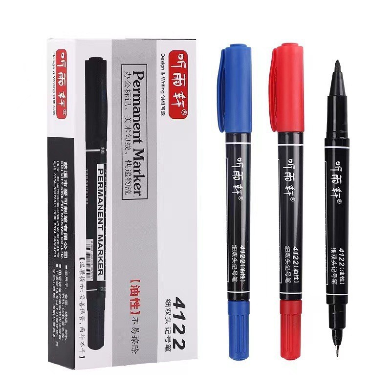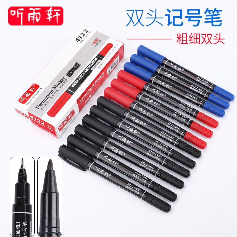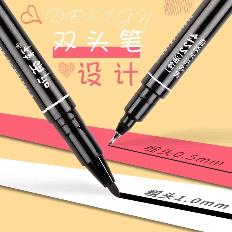 听雨轩双头记号笔油性细杆美术勾线办公标记美术学生小双头笔黑色