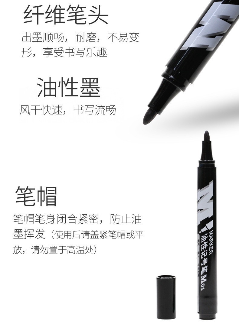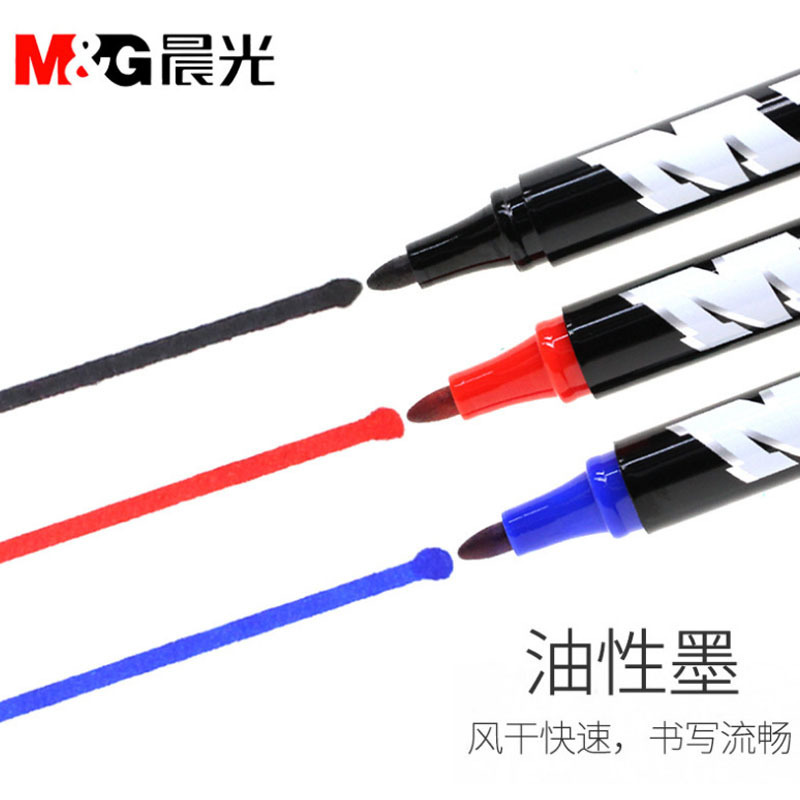 晨光记号笔油性M01黑红蓝色APMY2204大头记号笔打包笔单头不可擦