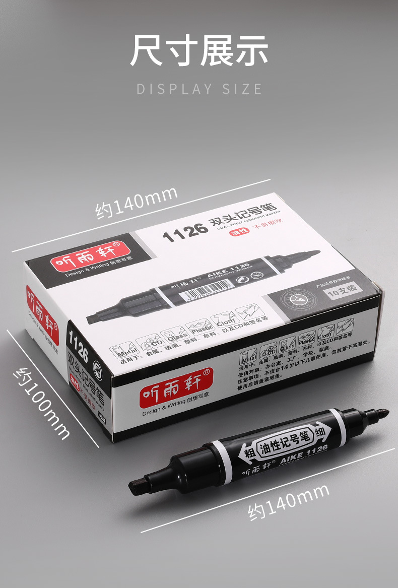 听雨轩1126大双头记号笔油性防水油不掉色速干马克笔粗细两头批发
