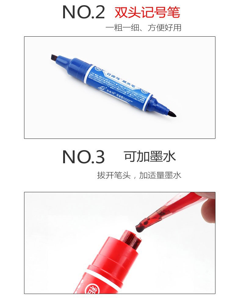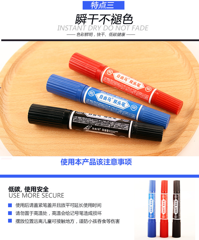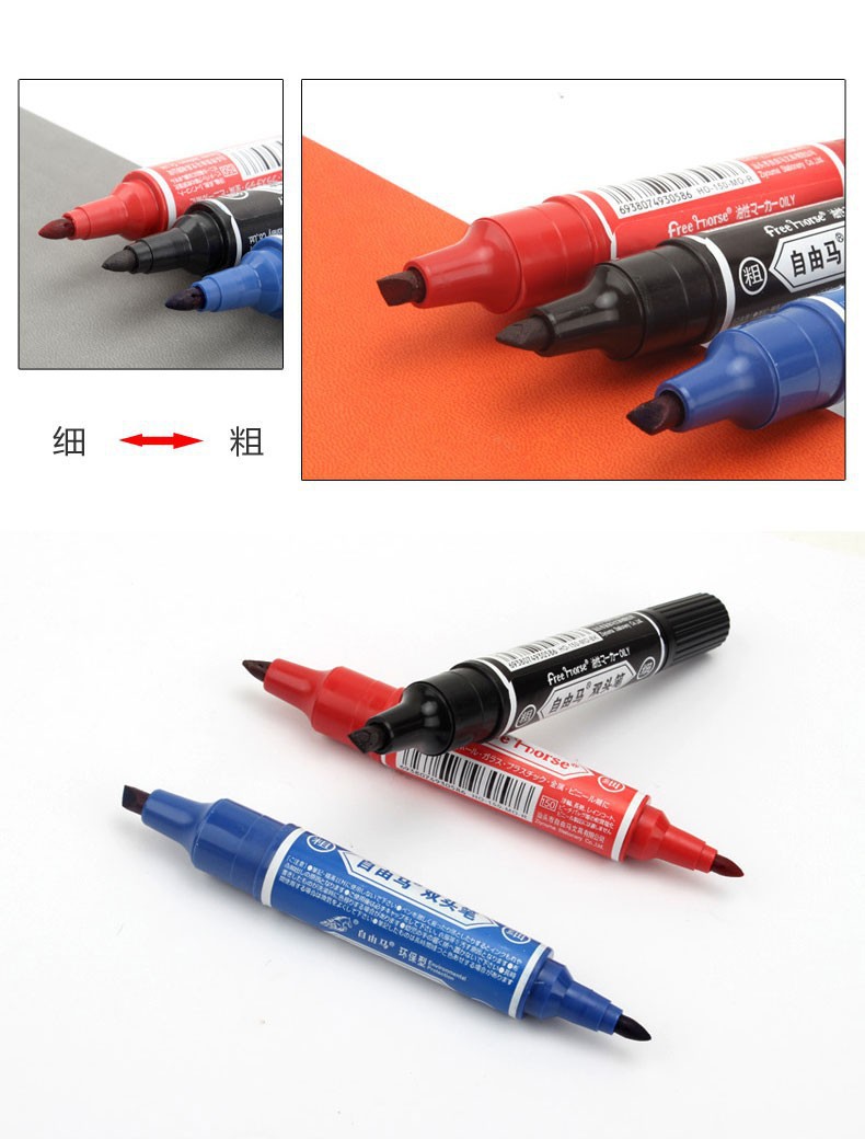 自由马防水双头记号笔擦不掉油性粗笔速干不褪色黑勾线快递大头笔
