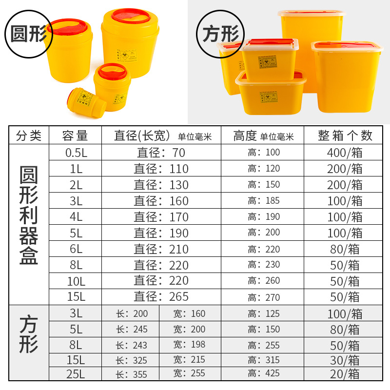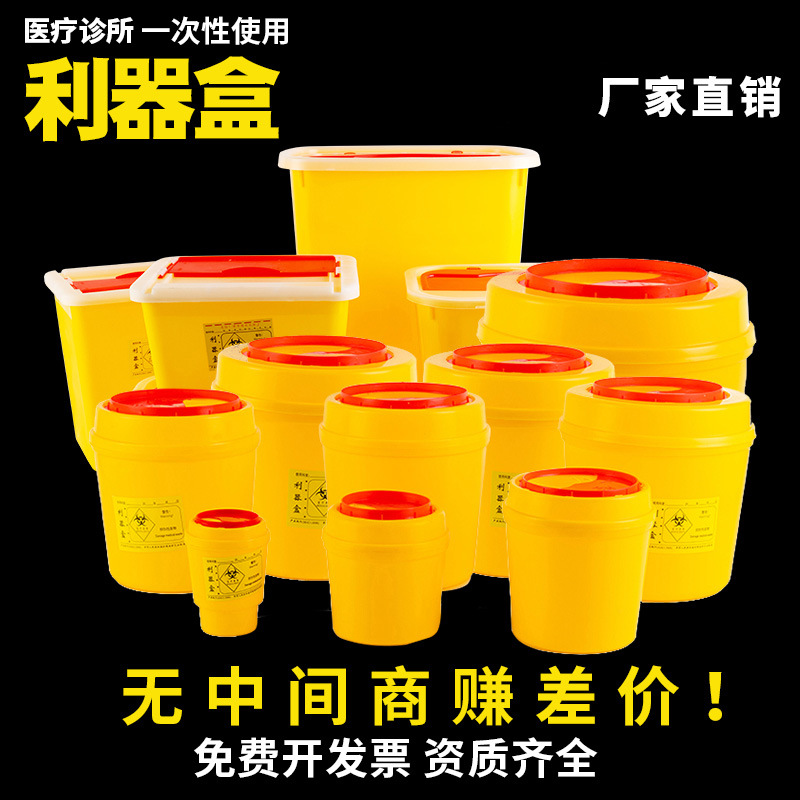 医 疗垃圾桶圆形利器盒一次性塑料方形垃圾桶黄色诊所医用锐器盒