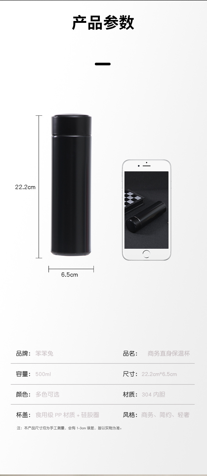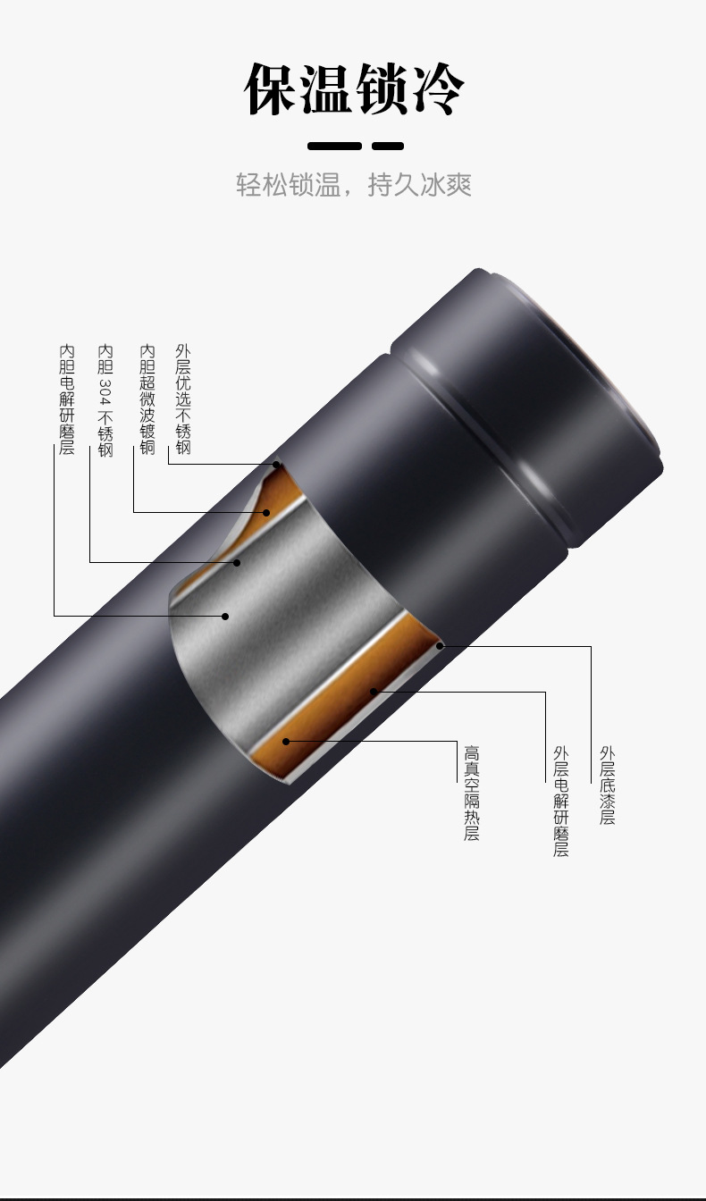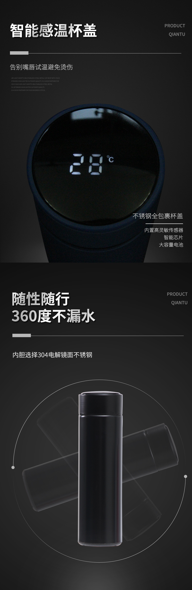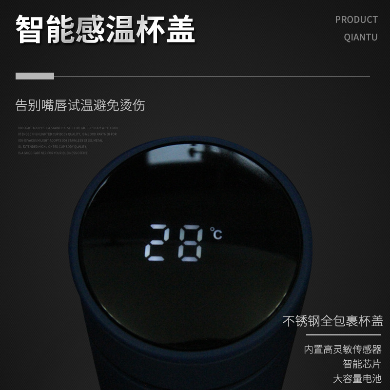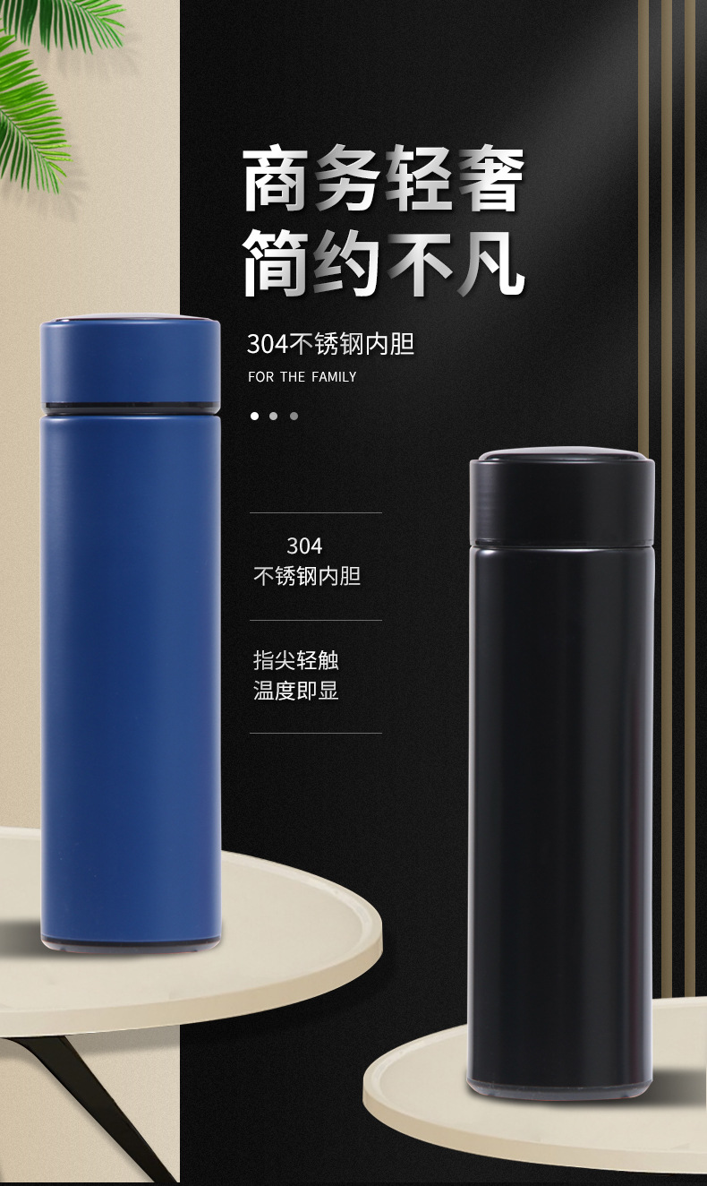 男士商务智能保温杯不锈钢直身办公杯定制LED触摸显示屏温度杯