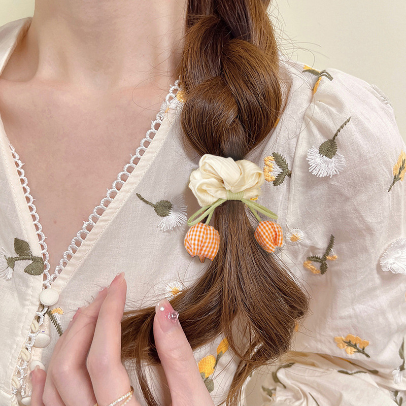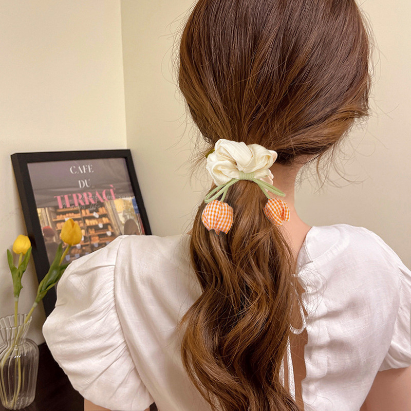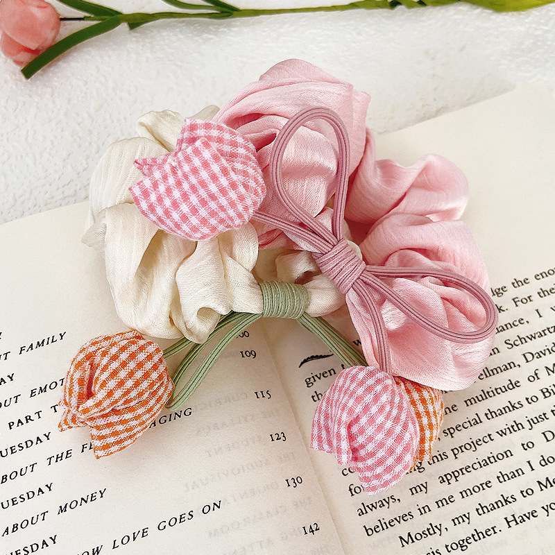 郁金香大肠发圈头绳女扎马尾皮筋扎头发绳蝴蝶结缎面甜美可爱头饰