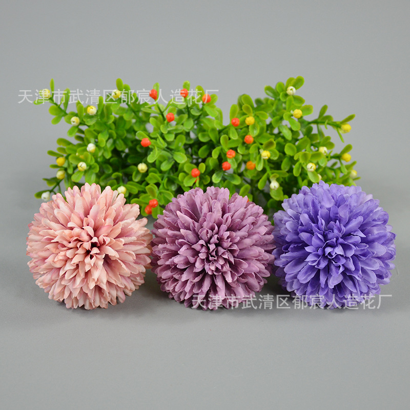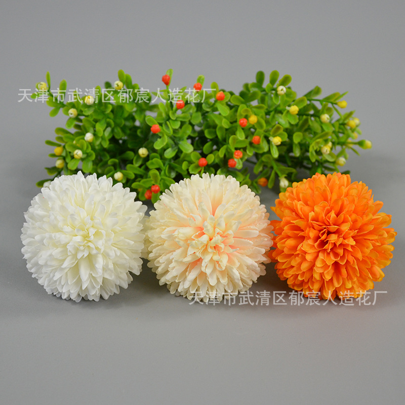 仿真乒乓菊花朵批发婚礼桌花装饰绢花油画小球菊花头绢布千层菊头