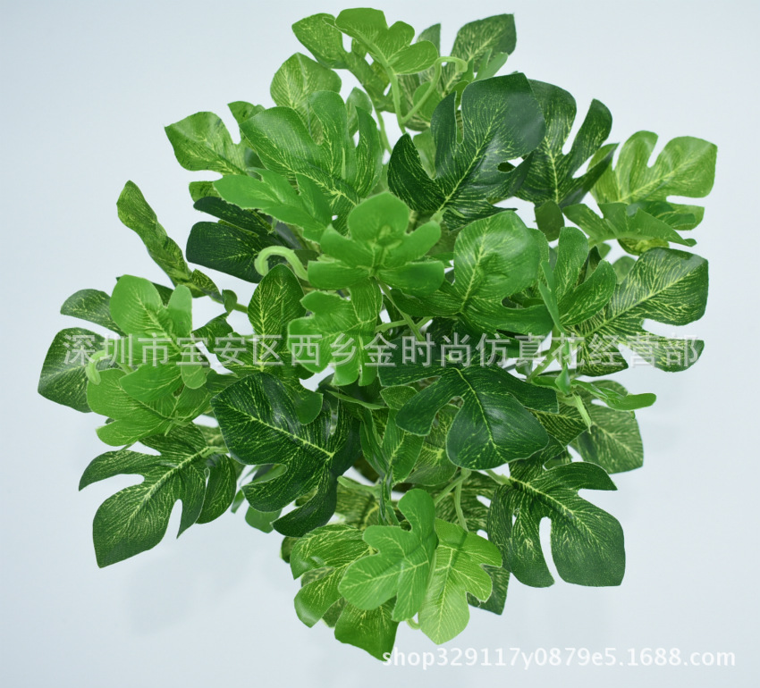 厂家直销 仿真植物 塑料假花 植物墙配材 过胶手感叶 龟背叶 绿萝
