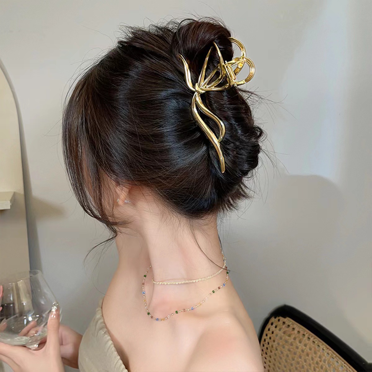 简约冷淡风蝴蝶金属合金发夹女春夏鲨鱼夹抓夹