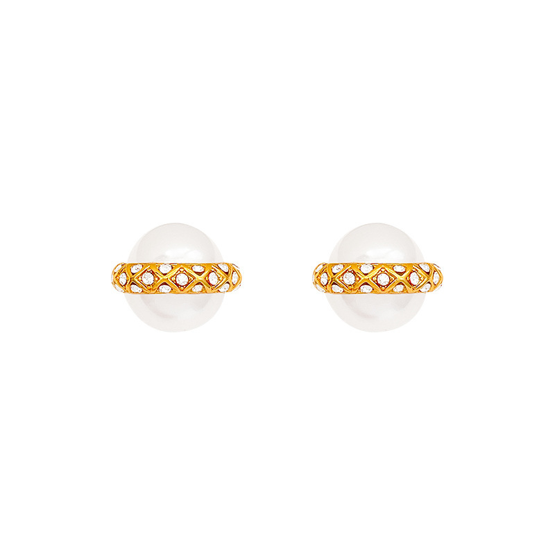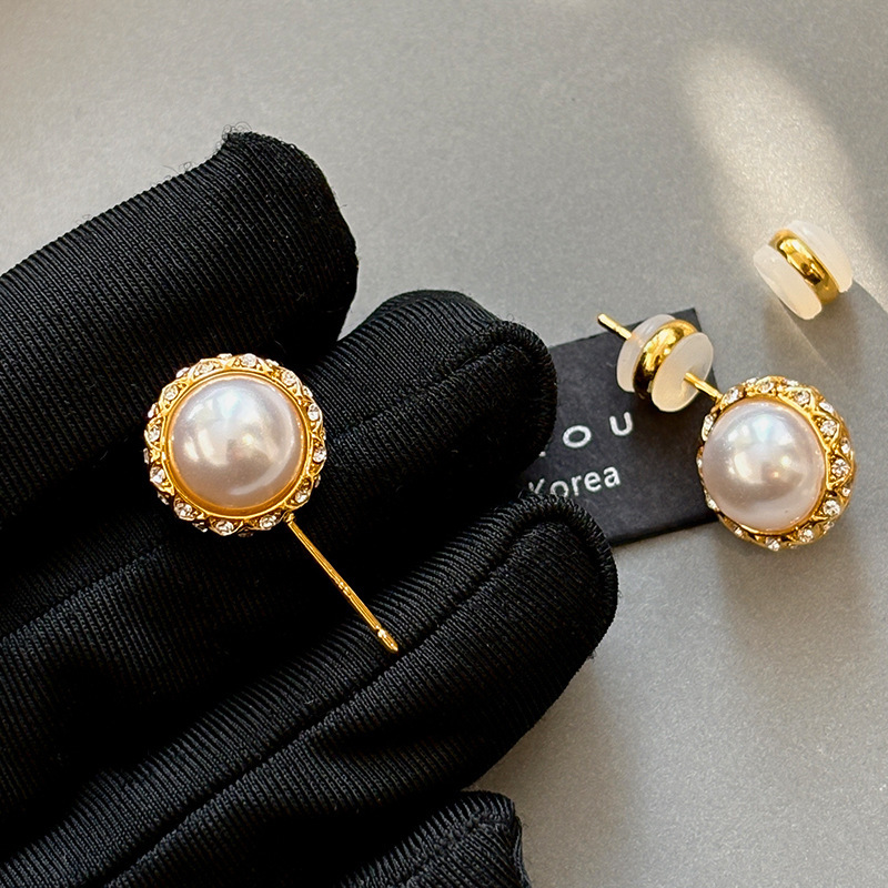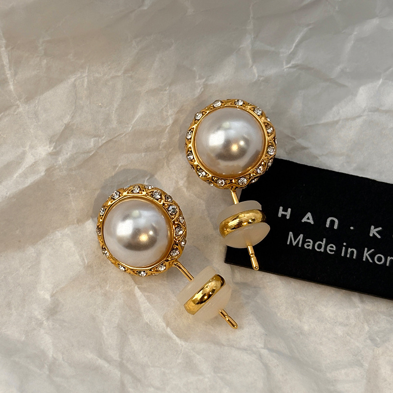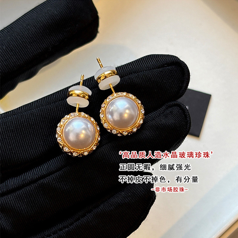 精致微镶满钻锆石耳环耳饰品S925纯银针法式复古高级感珍珠耳钉女