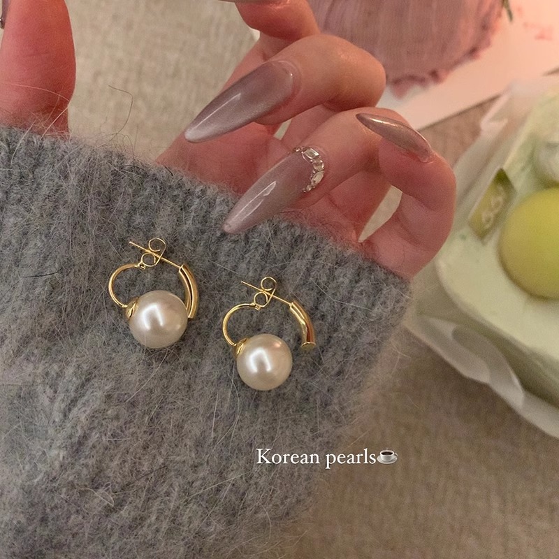 s925银珍珠耳钉女轻奢高级感小众网红百搭耳环2024年秋冬耳饰批发