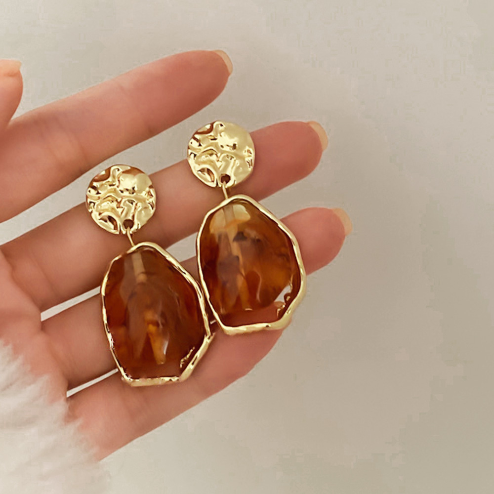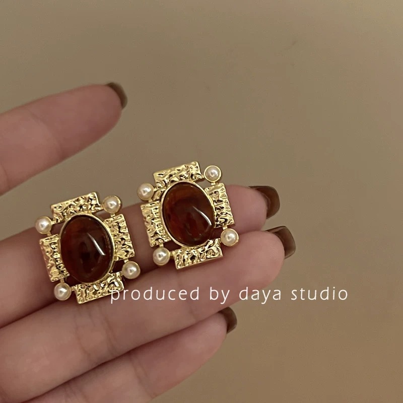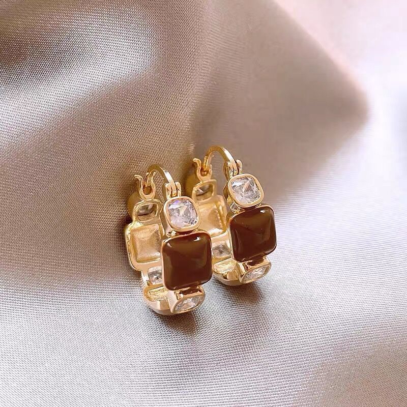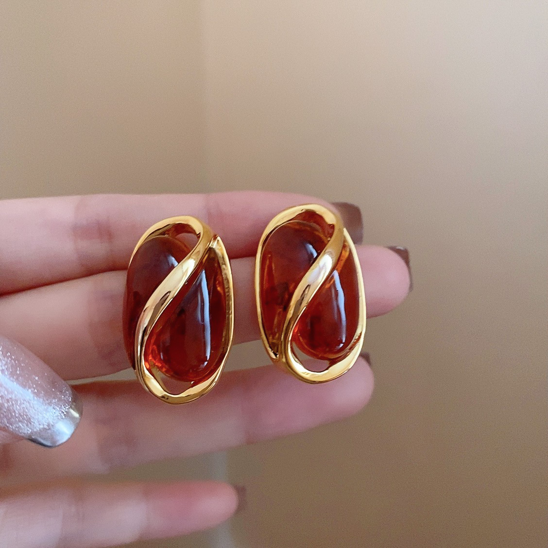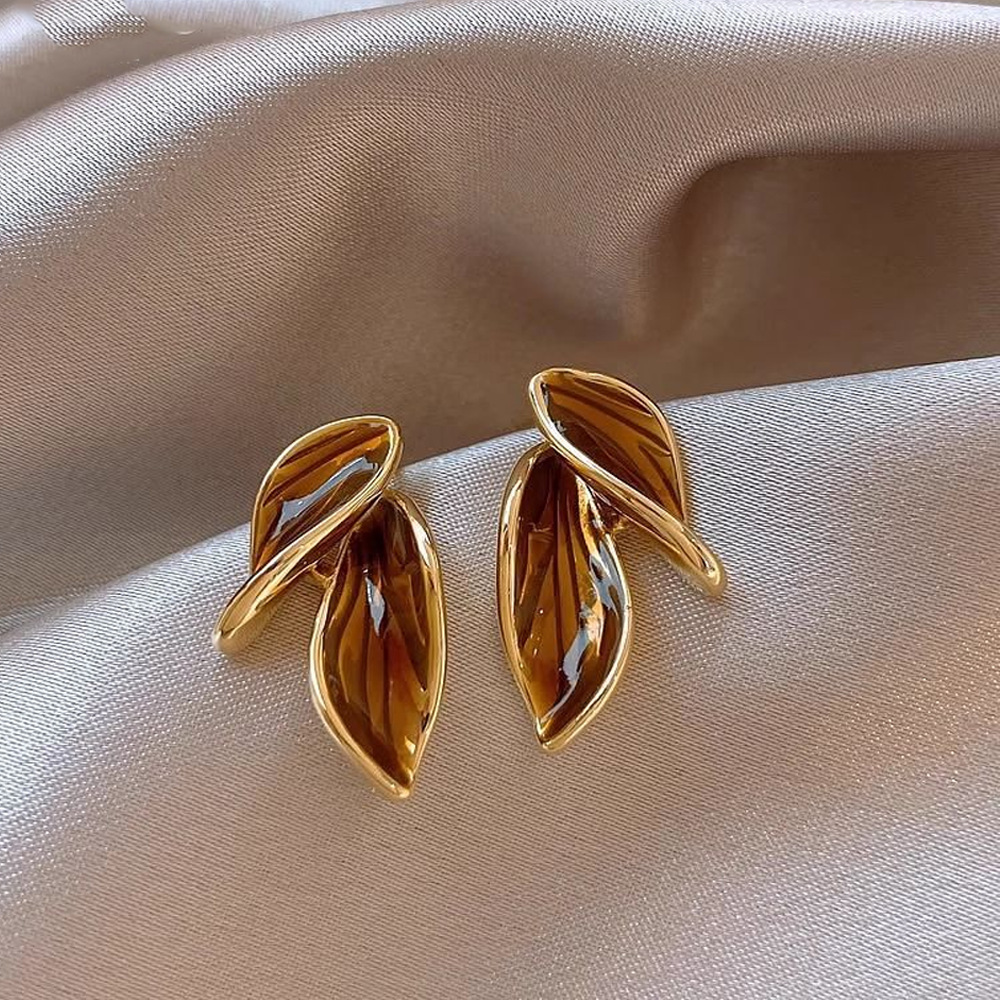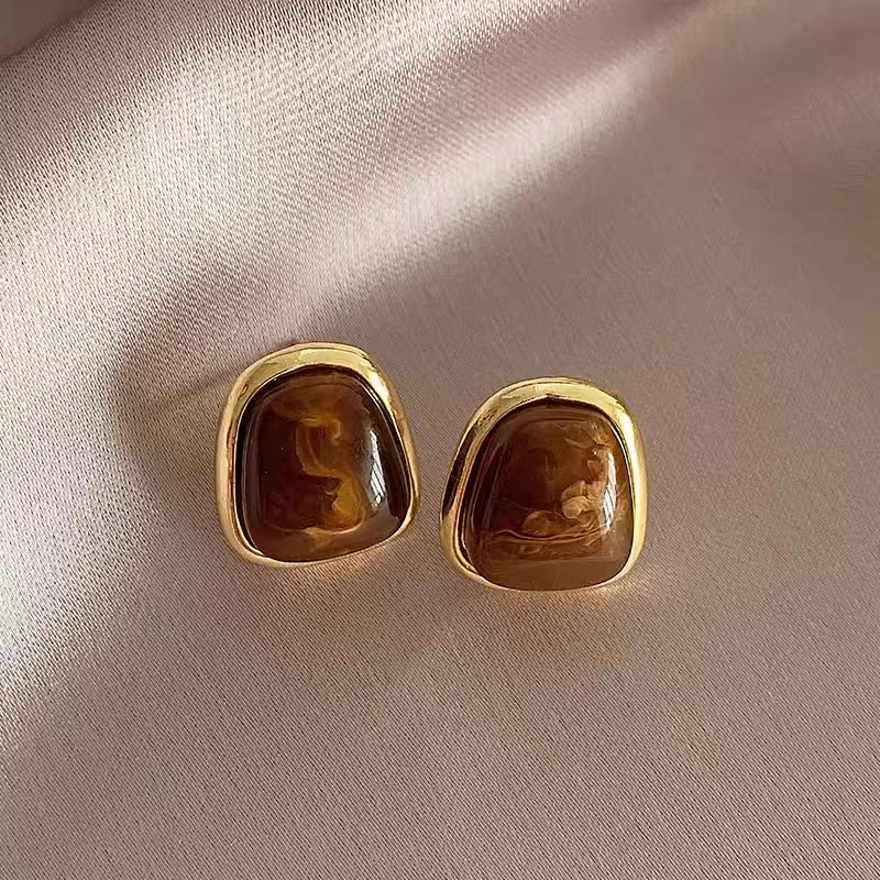 银针港风复古高级感美拉德色系耳环女通勤文艺风耳坠优雅轻奢耳饰