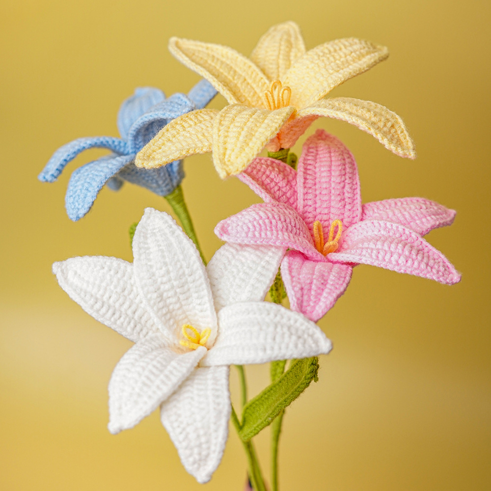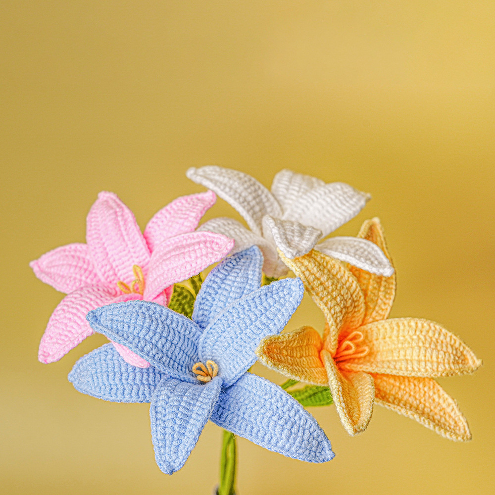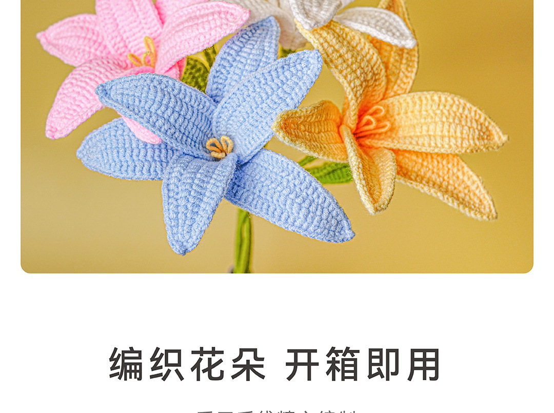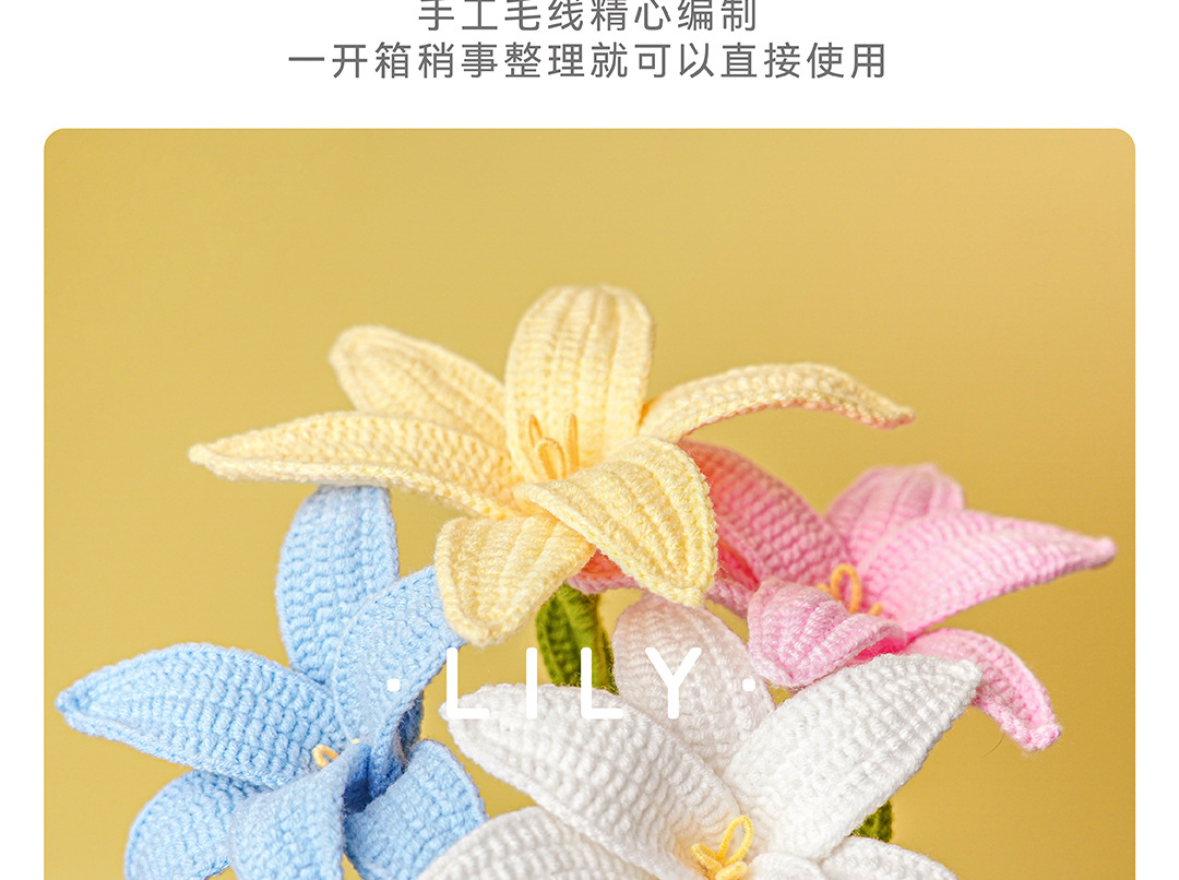 手工编织花束diy成品自制毛线钩织百合成品花束送女友礼物花