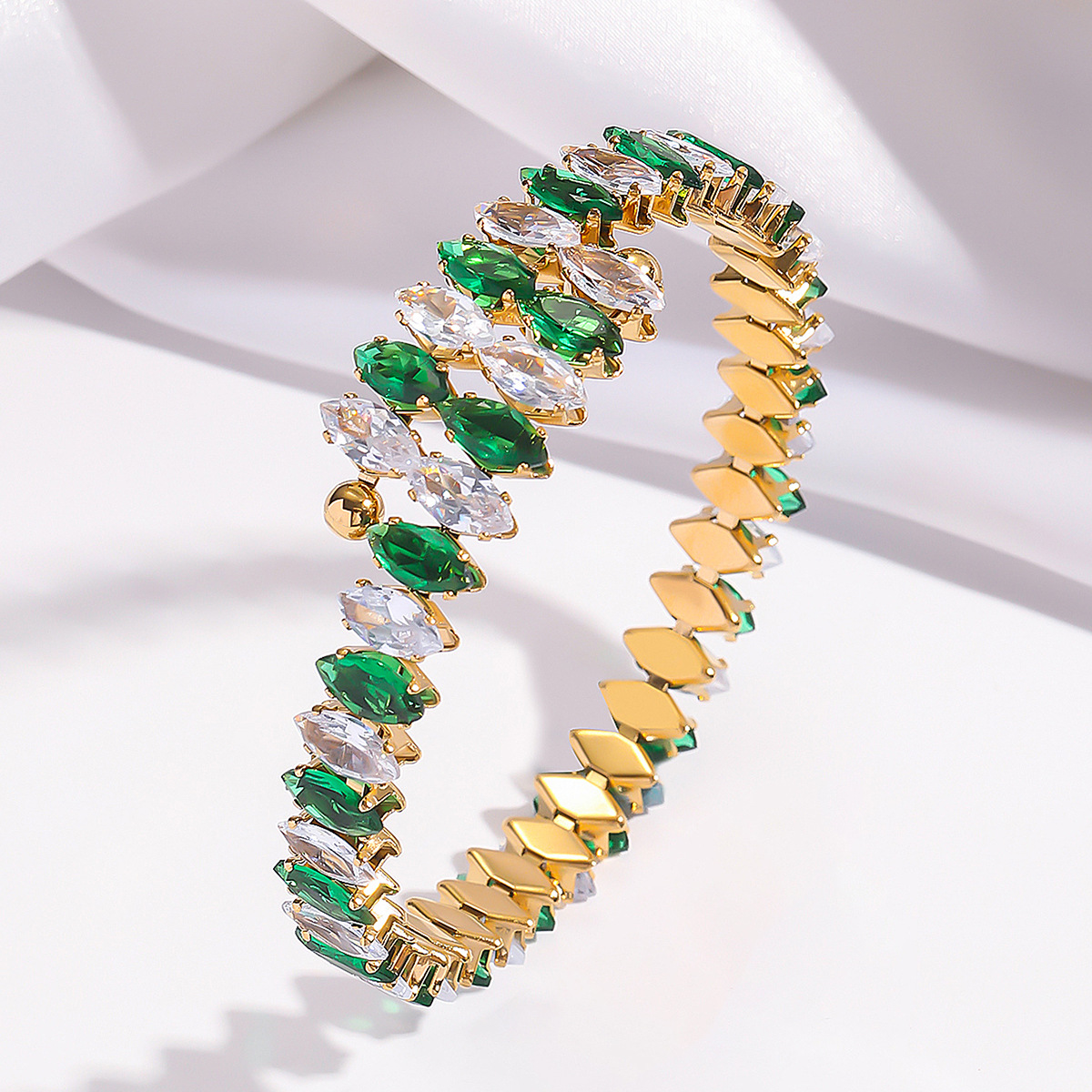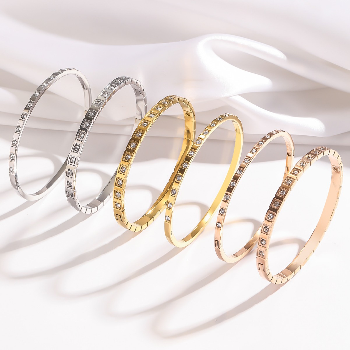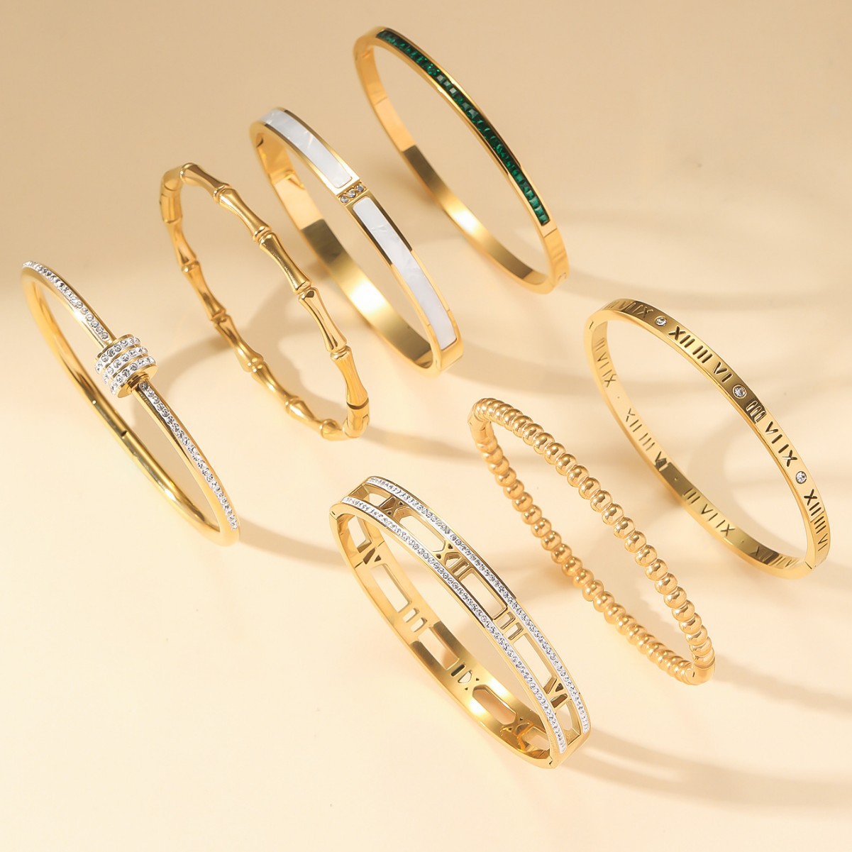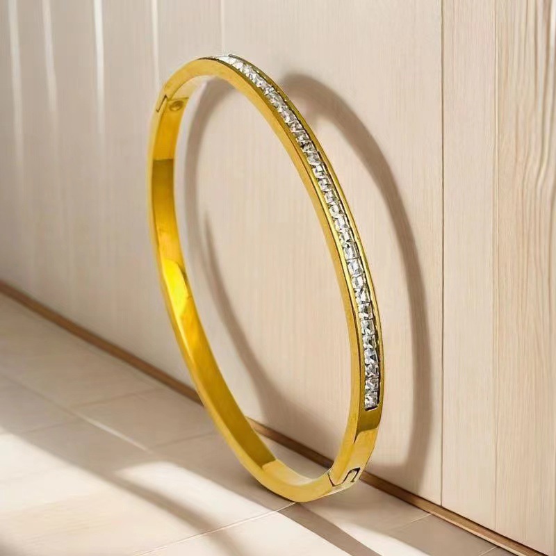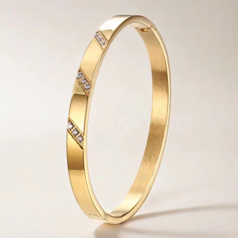 手镯女跨境不锈钢满天星小蛮腰贝壳欧美气质时尚锆石钛钢手镯手环