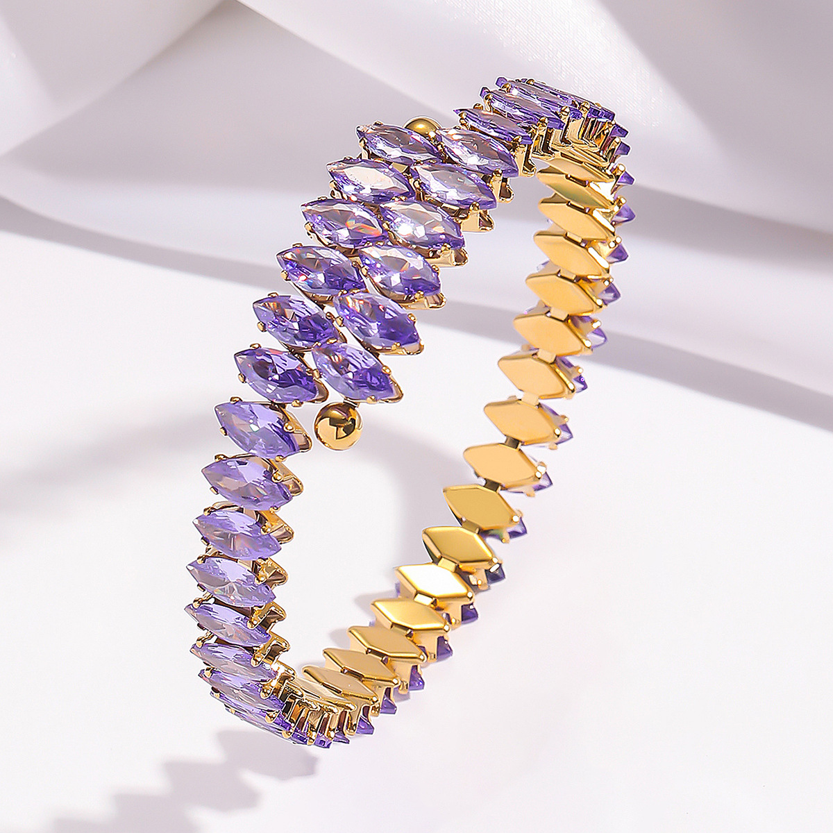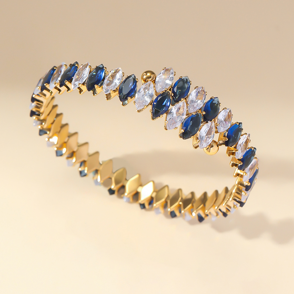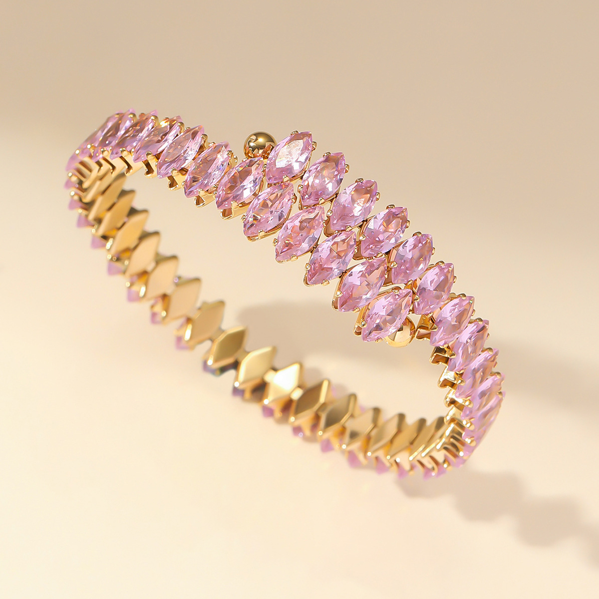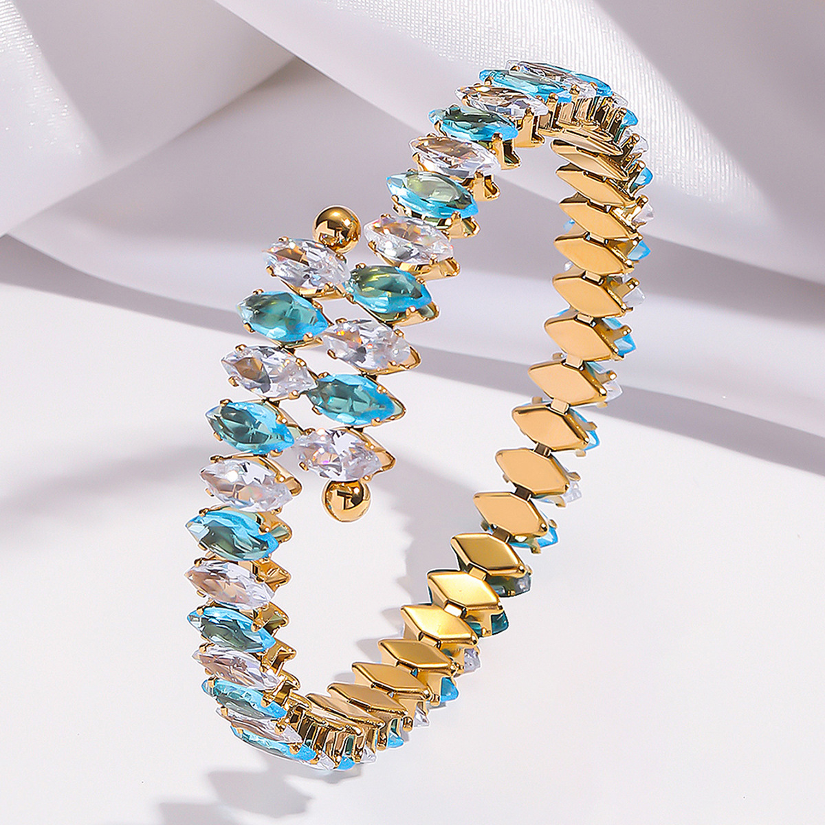 手镯女跨境不锈钢满天星小蛮腰贝壳欧美气质时尚锆石钛钢手镯手环