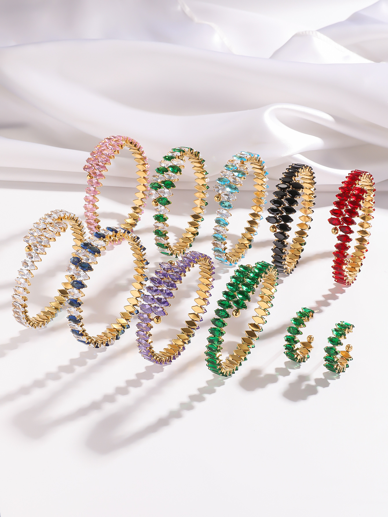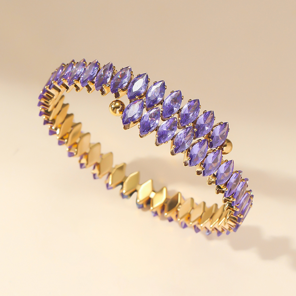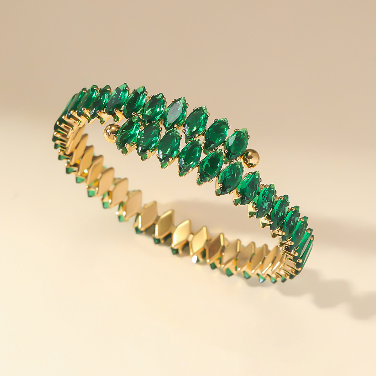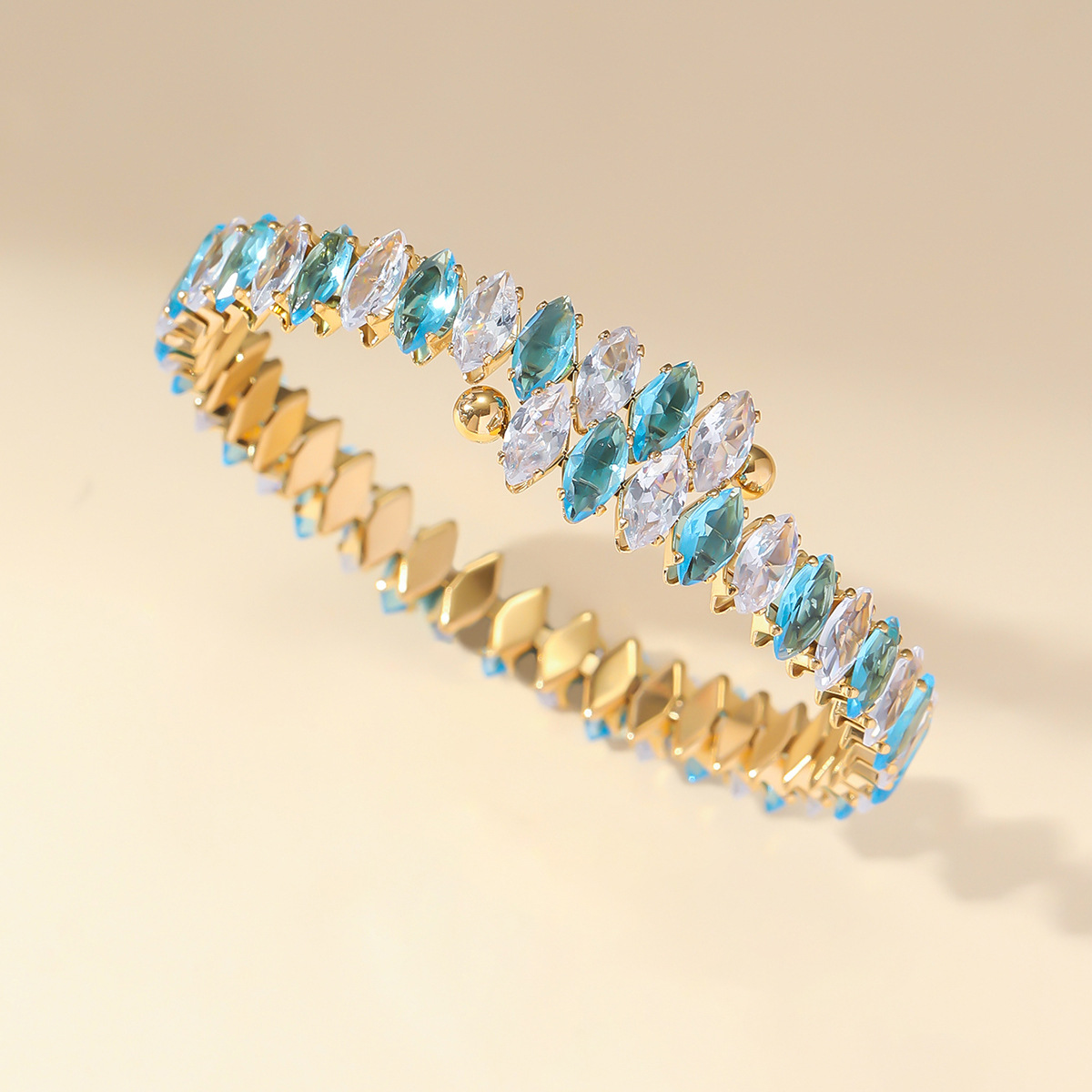 手镯女跨境不锈钢满天星小蛮腰贝壳欧美气质时尚锆石钛钢手镯手环