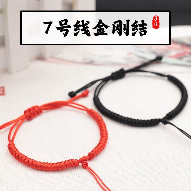 简约款金刚结手绳半成品编织手链男女本命年红绳情侣可穿珠平安扣