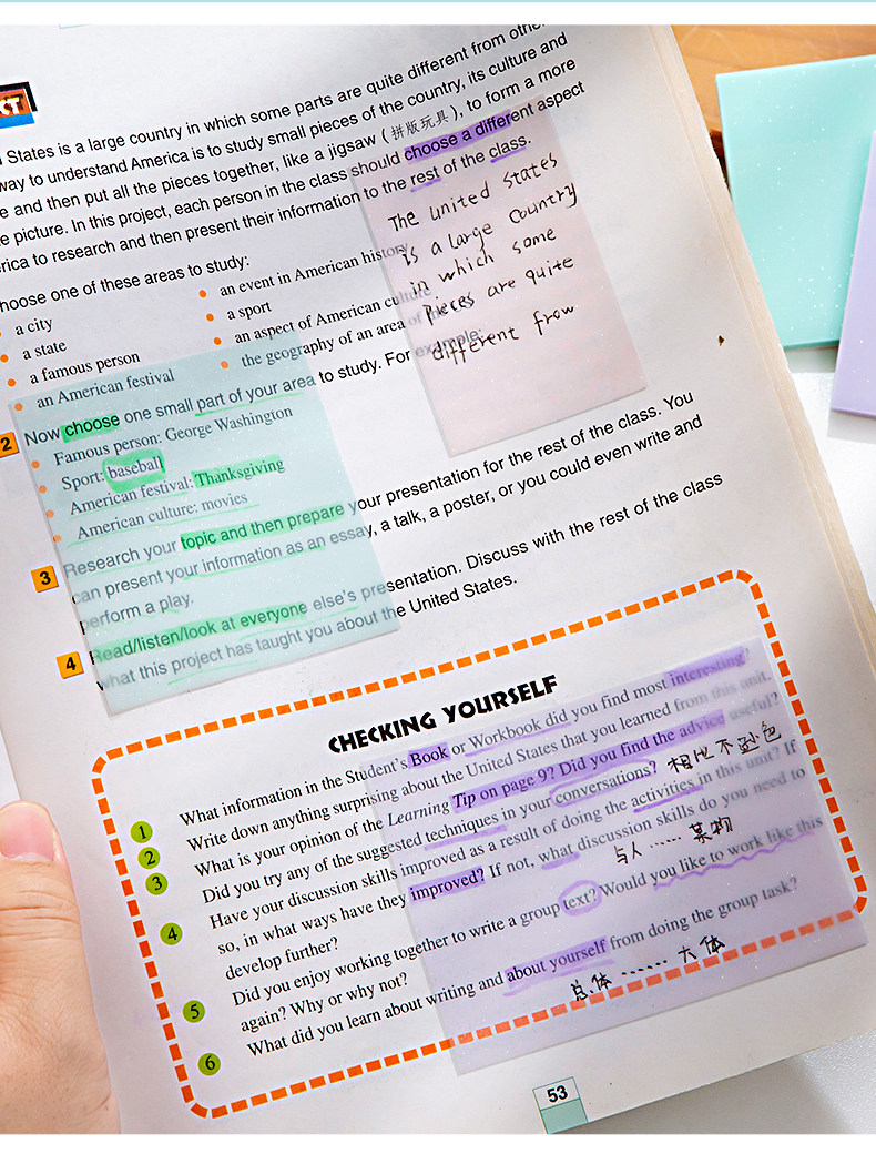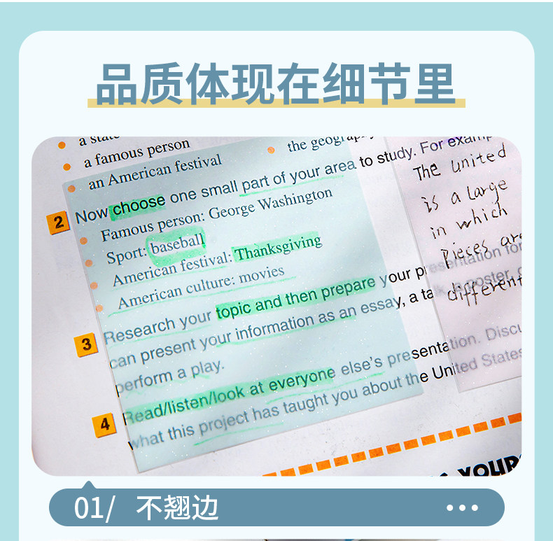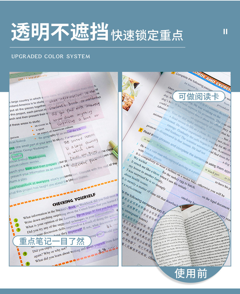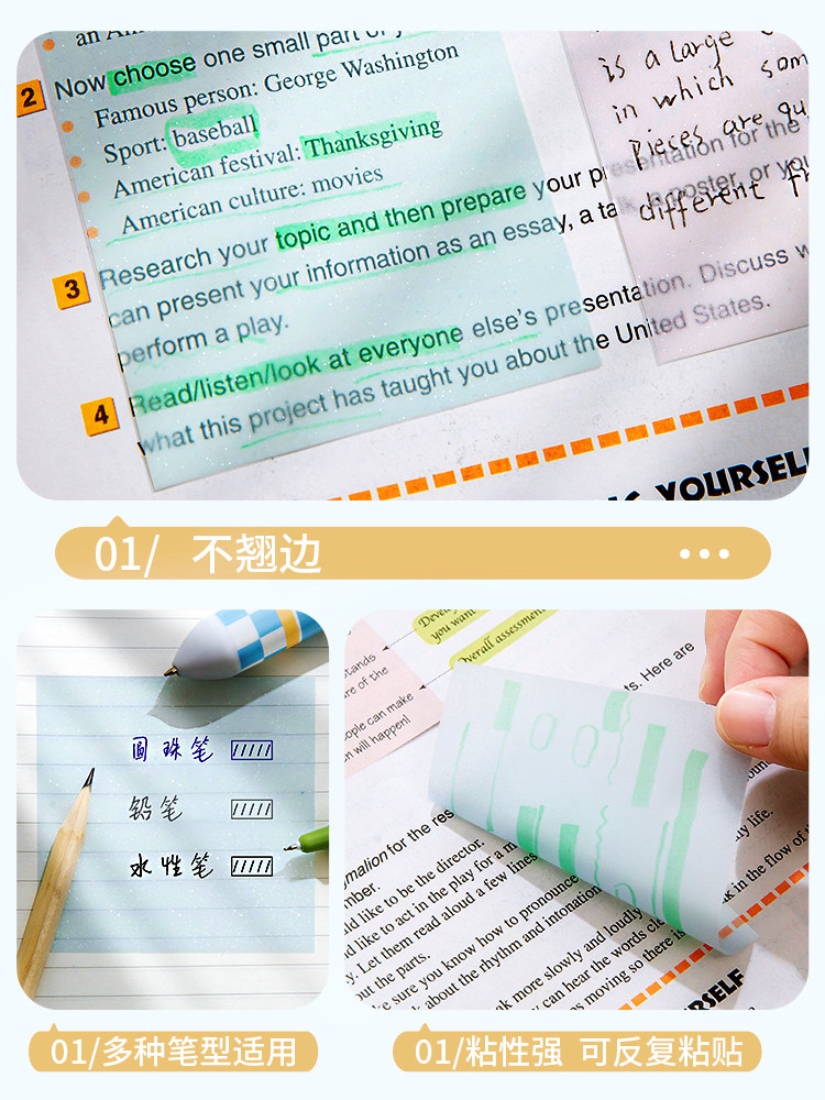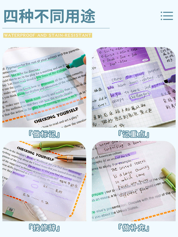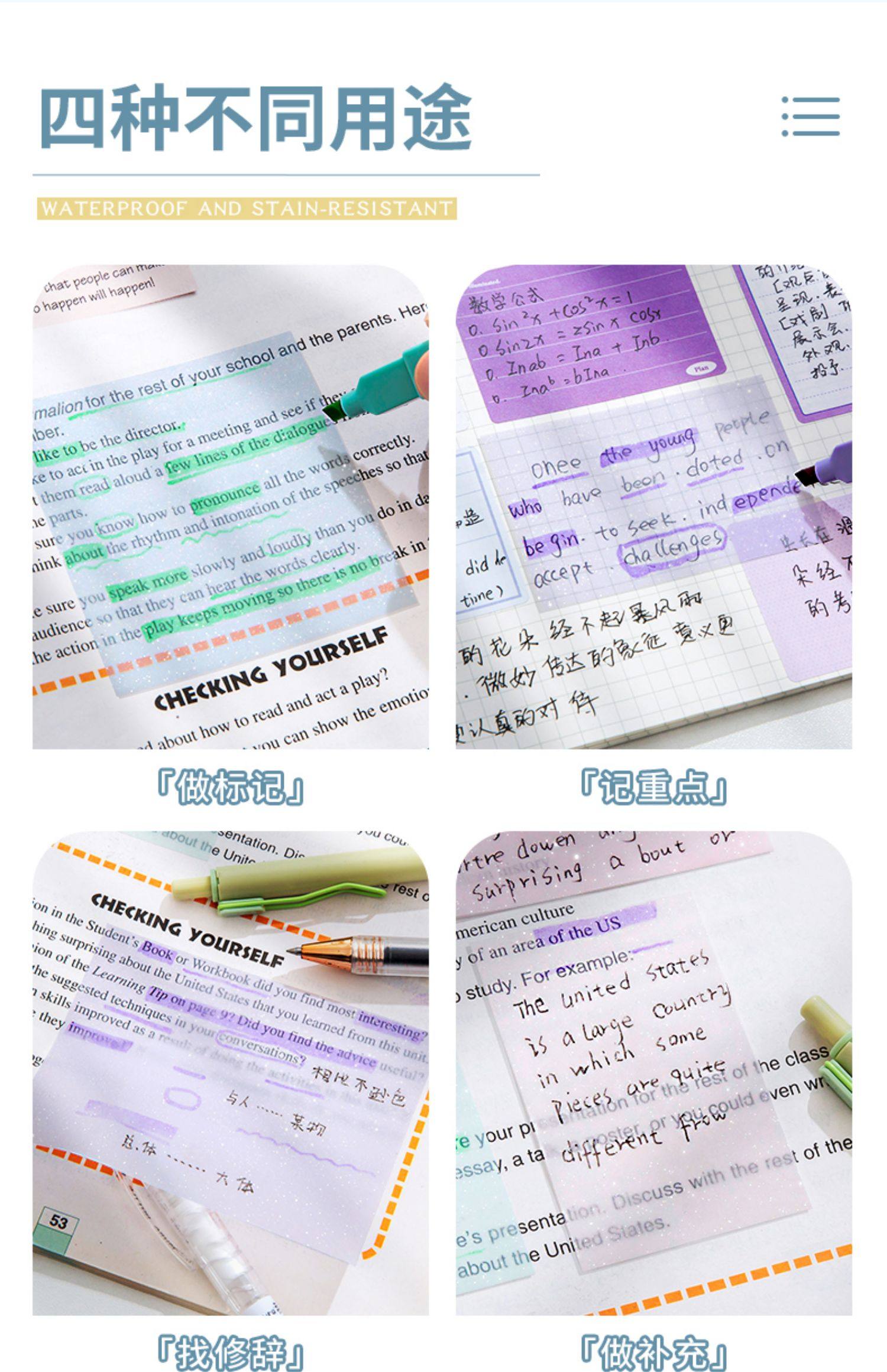 彩色透明便利贴学生重点标记贴防水粘性强便签纸外卖留言记事贴纸