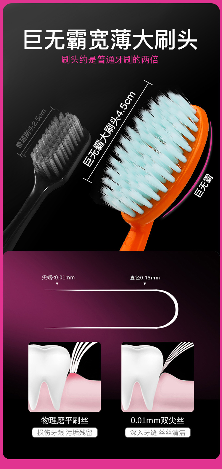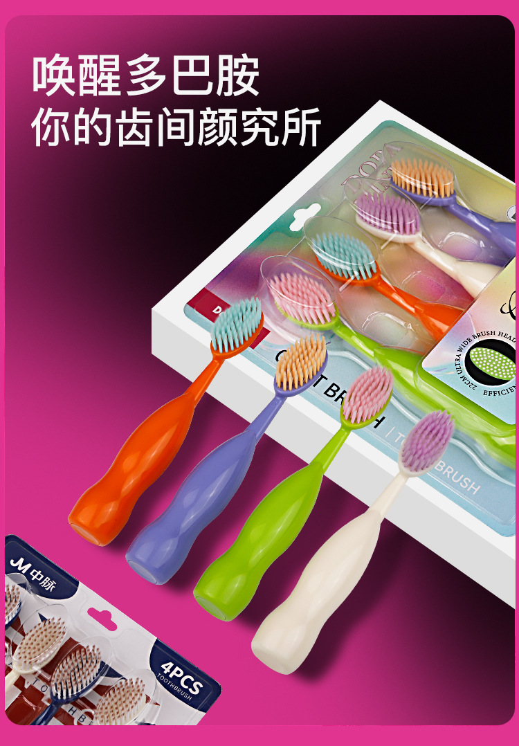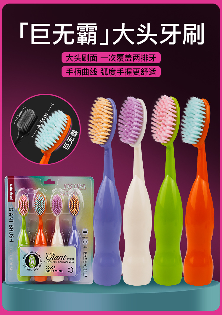 多巴胺大头牙刷高颜值家用软毛清洁宽头成人细毛加宽护龈厂家批发