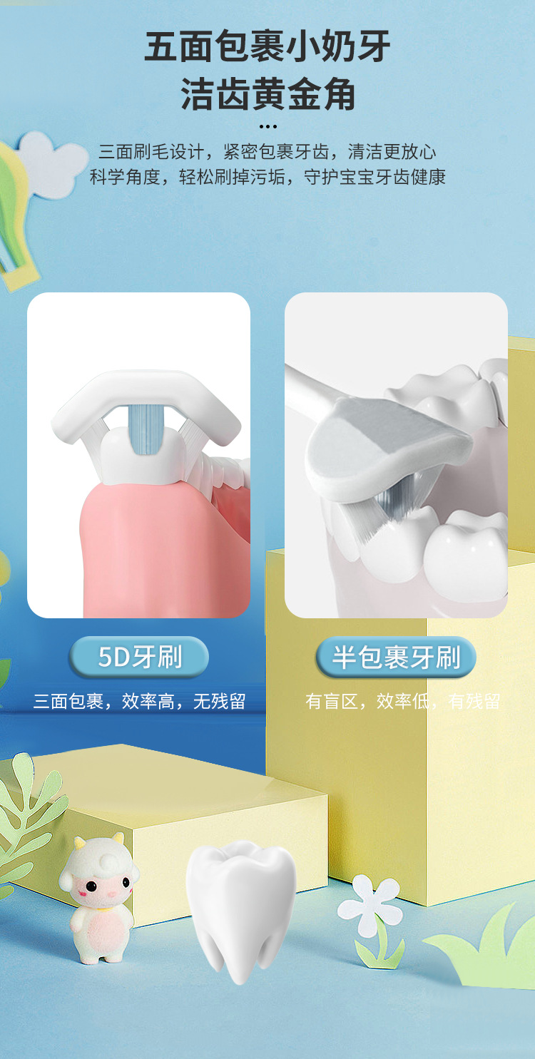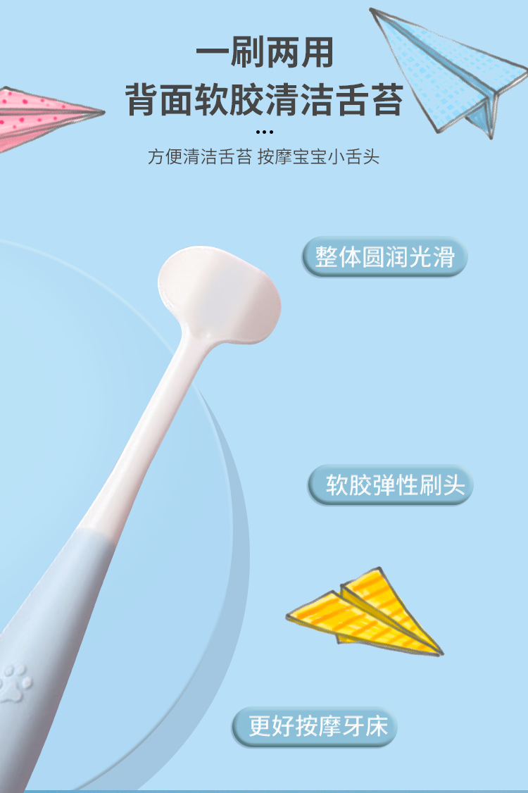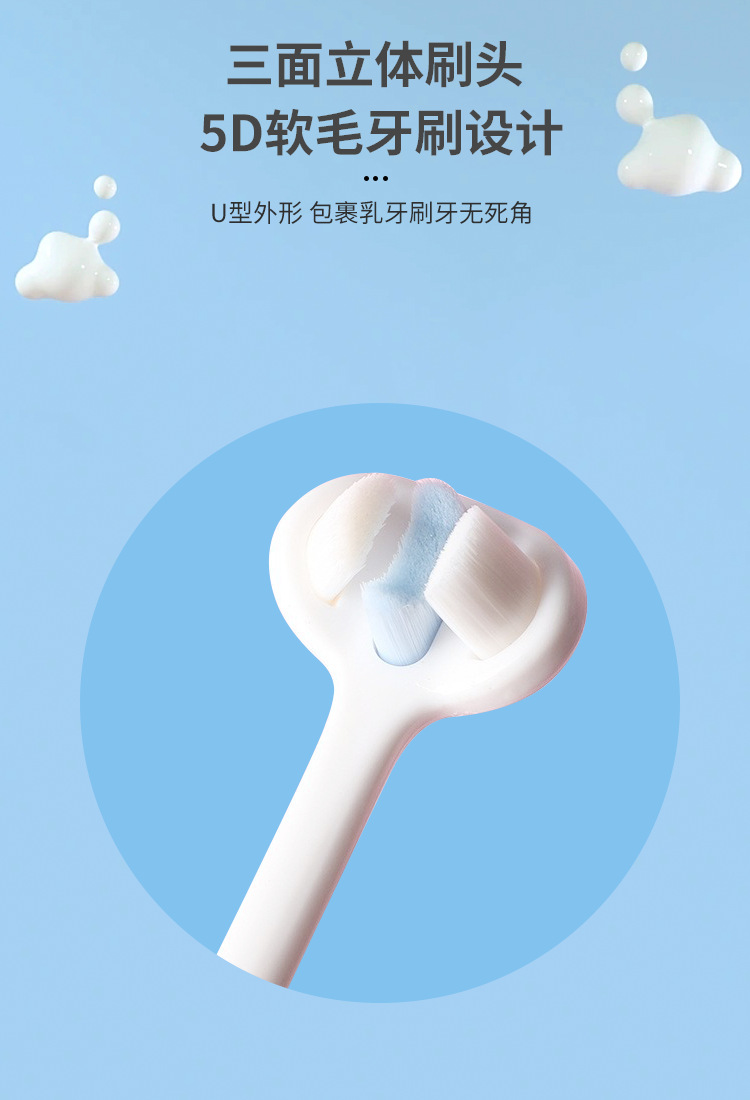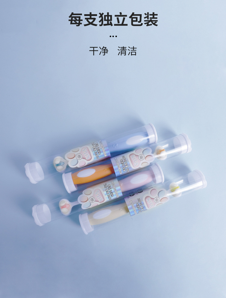 新款三面清洁牙刷猫爪造型3-12岁四色5d网红儿童软毛牙刷批发