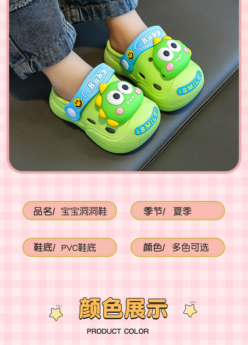 2024新恐龙宝宝洞洞鞋室内包头儿童软拖鞋夏男女童小孩婴幼儿凉鞋