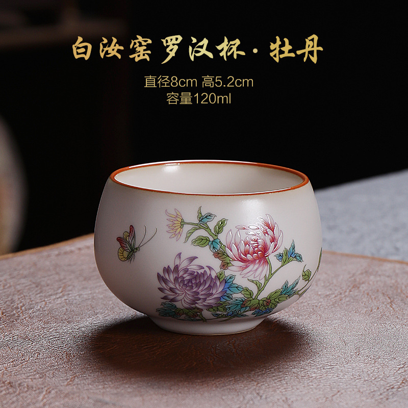 汝窑主人杯陶瓷茶杯手工手绘山水开片可养品茗杯家用单杯大号茶盏