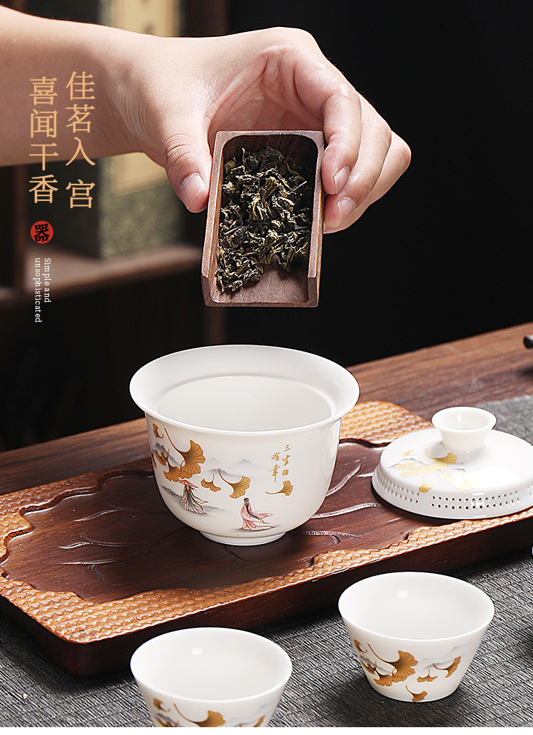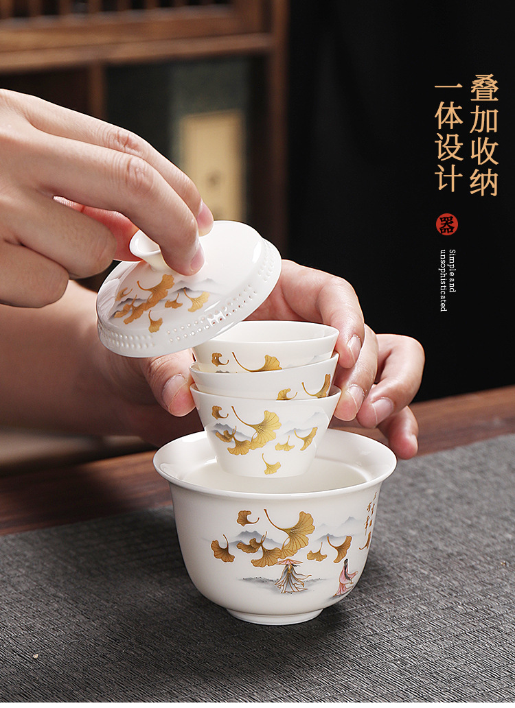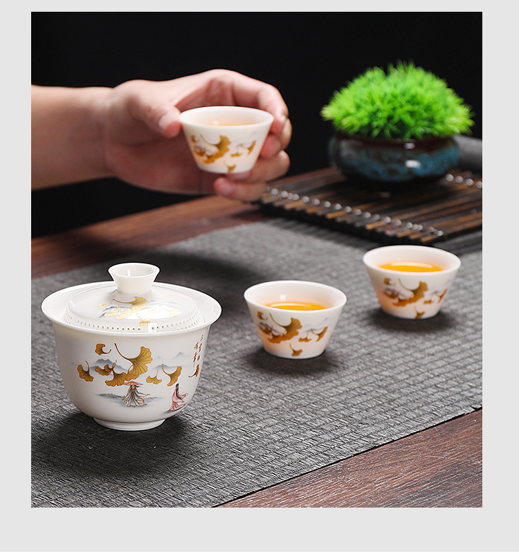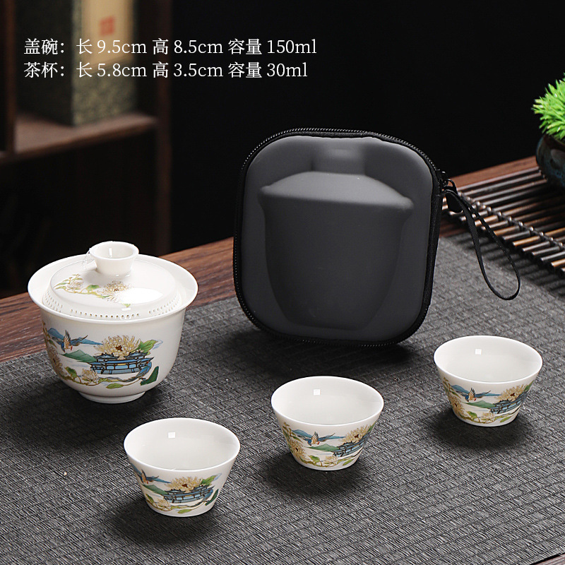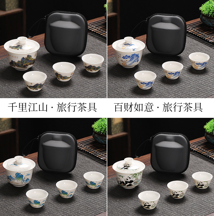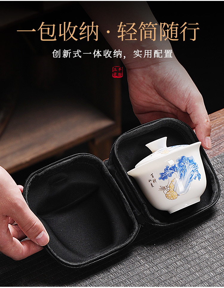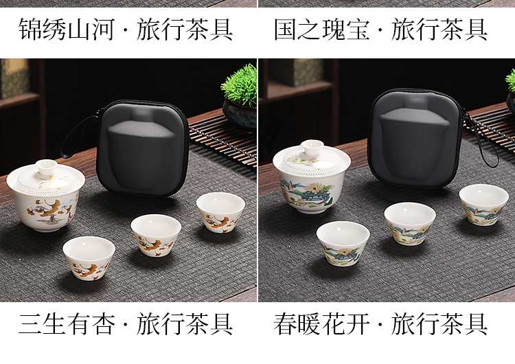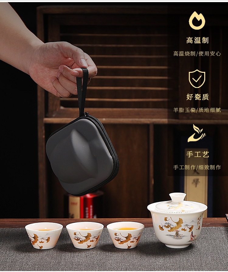 羊脂玉户外旅行茶具陶瓷一壶三杯快客杯便捷式收纳包伴手礼套装