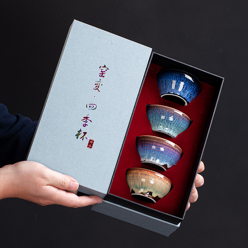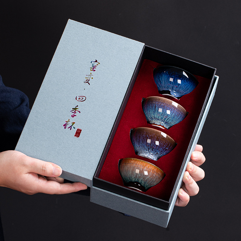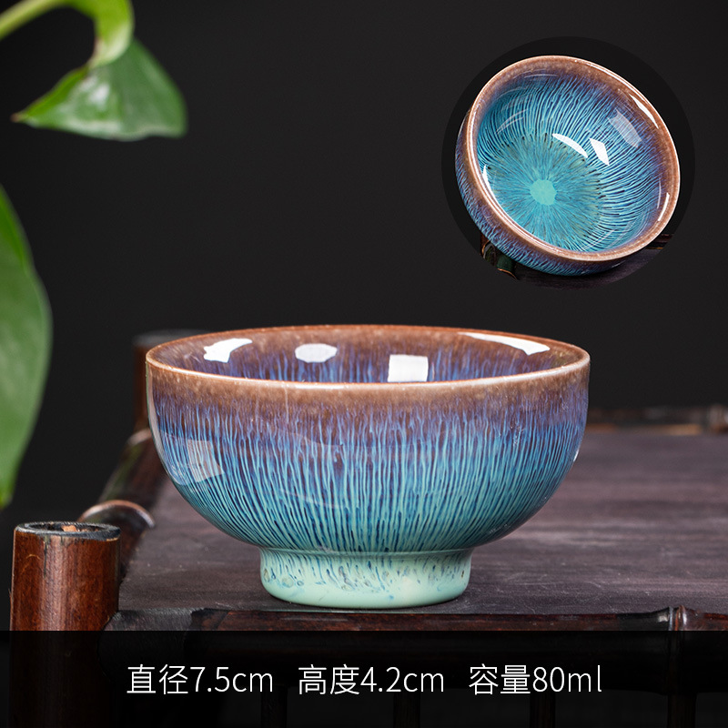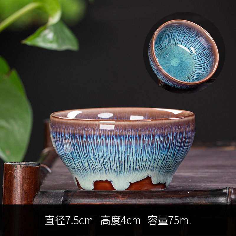 窑变茶杯陶瓷茶盏功夫茶杯建盏斗笠杯主人杯梅花杯小茶杯花瓣杯