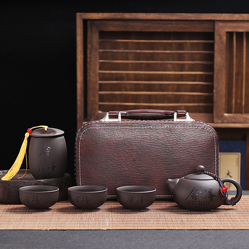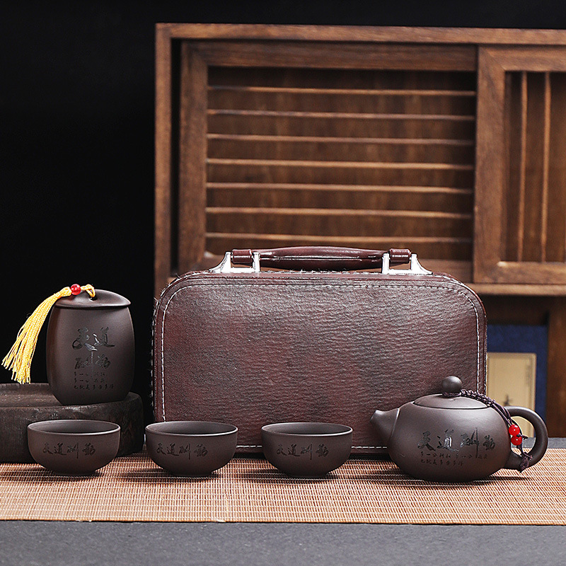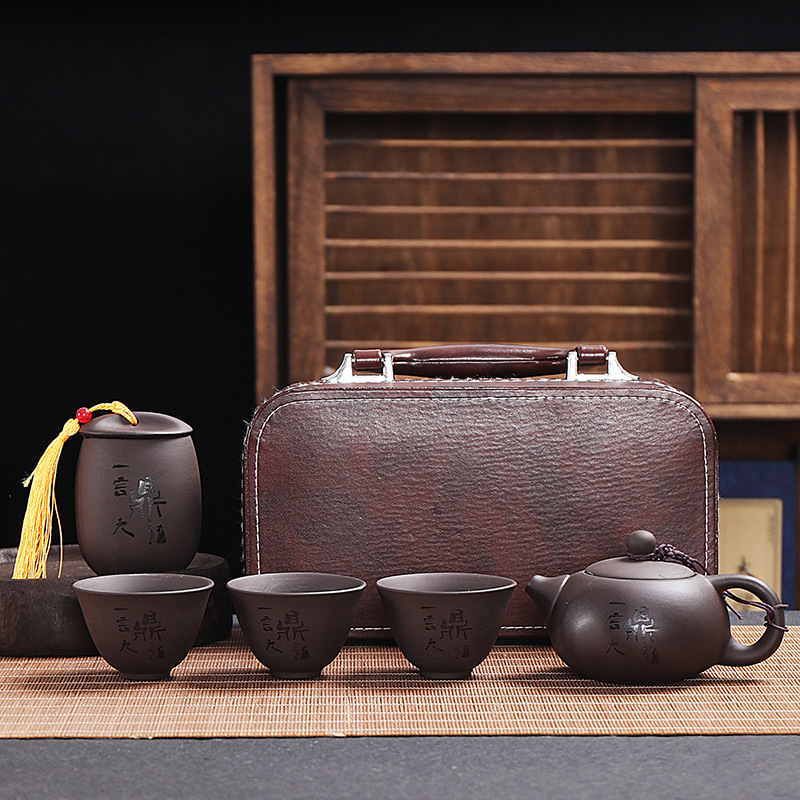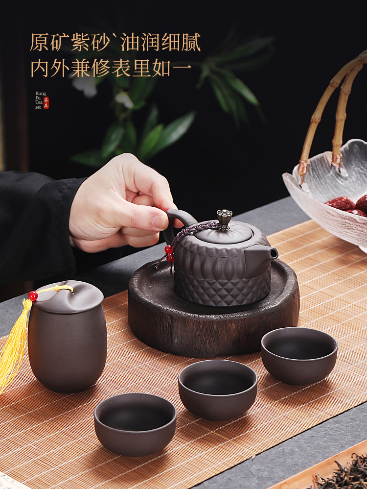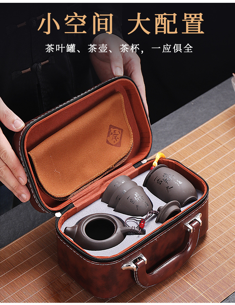 轻奢便携式紫砂旅行功夫茶具快客茶杯茶水分离户外整套装
