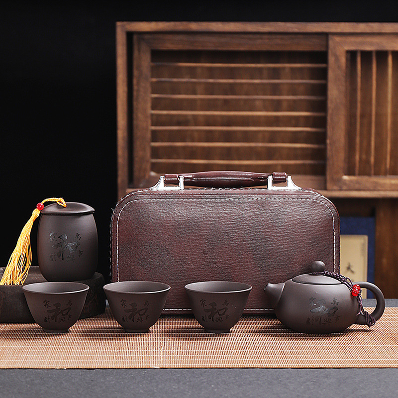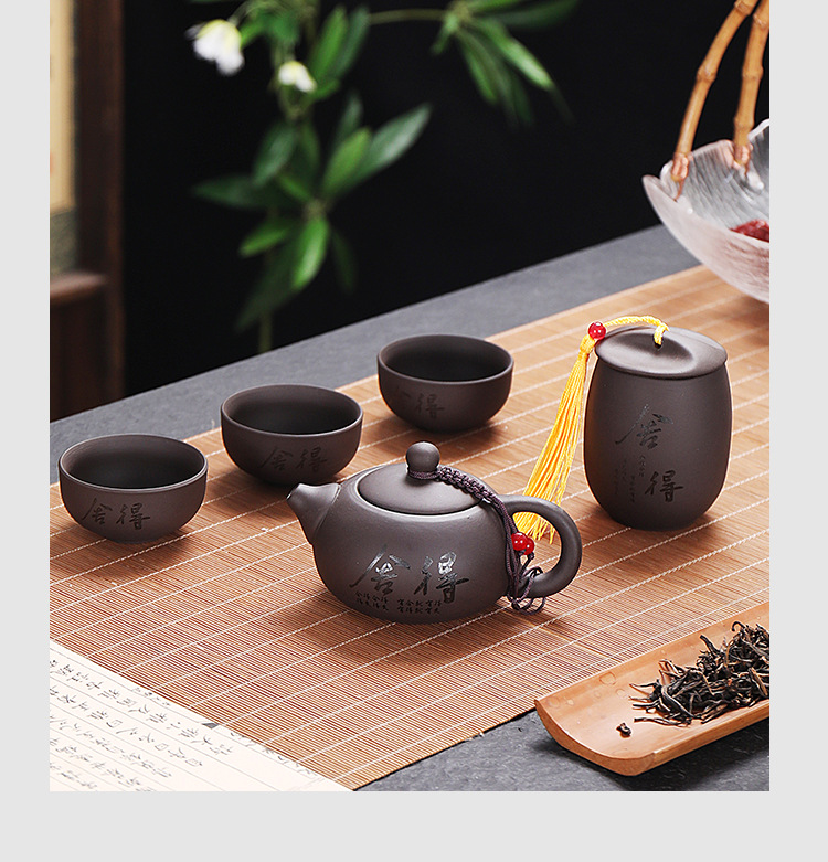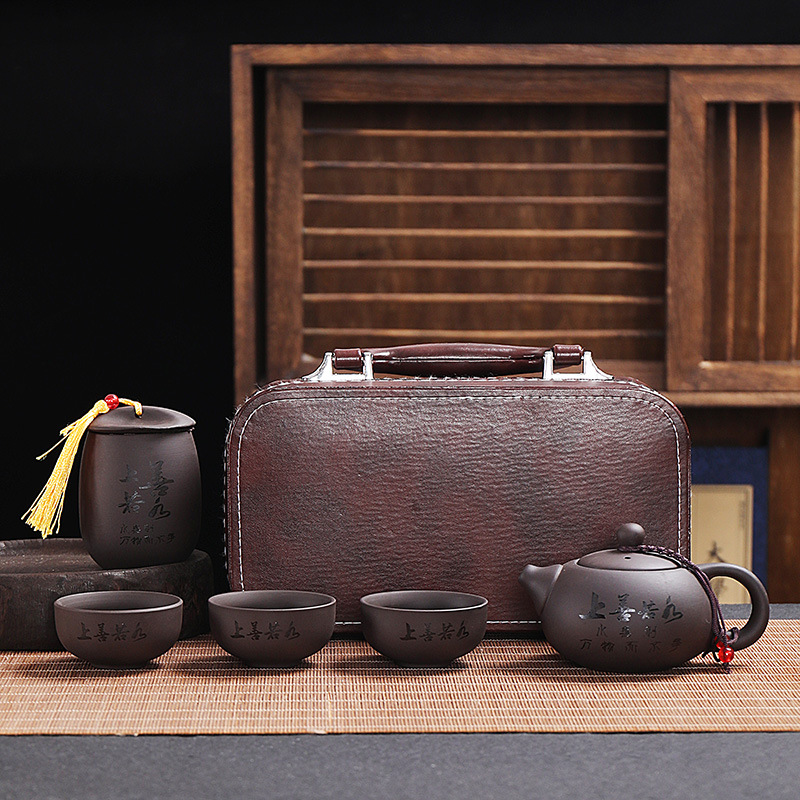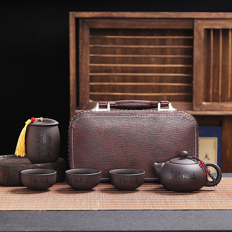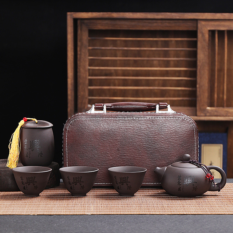 轻奢便携式紫砂旅行功夫茶具快客茶杯茶水分离户外整套装