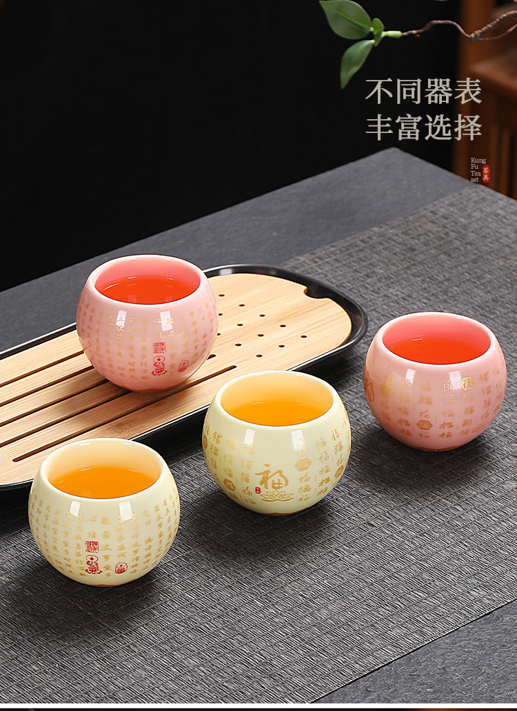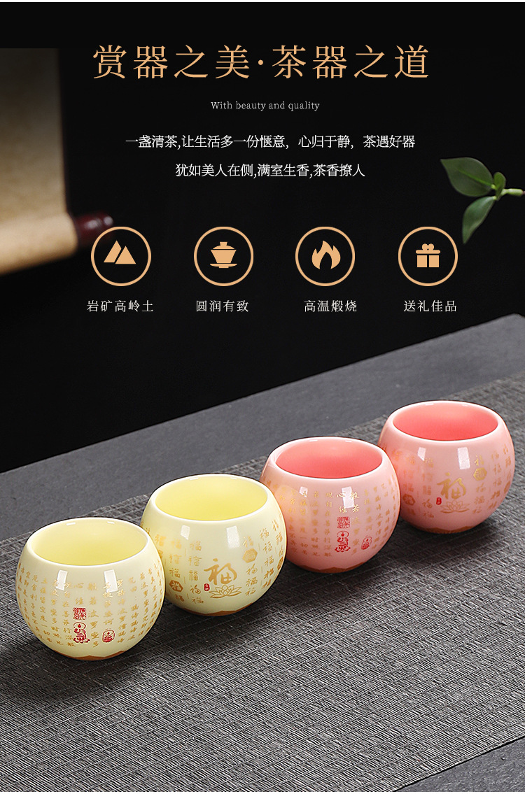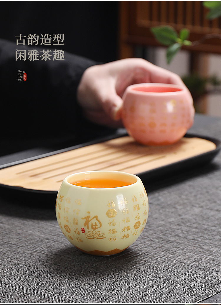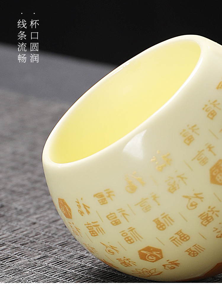 羊脂玉白瓷主人杯单杯茶杯百福单杯子个人专用大容量高端品茗杯