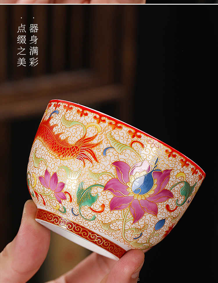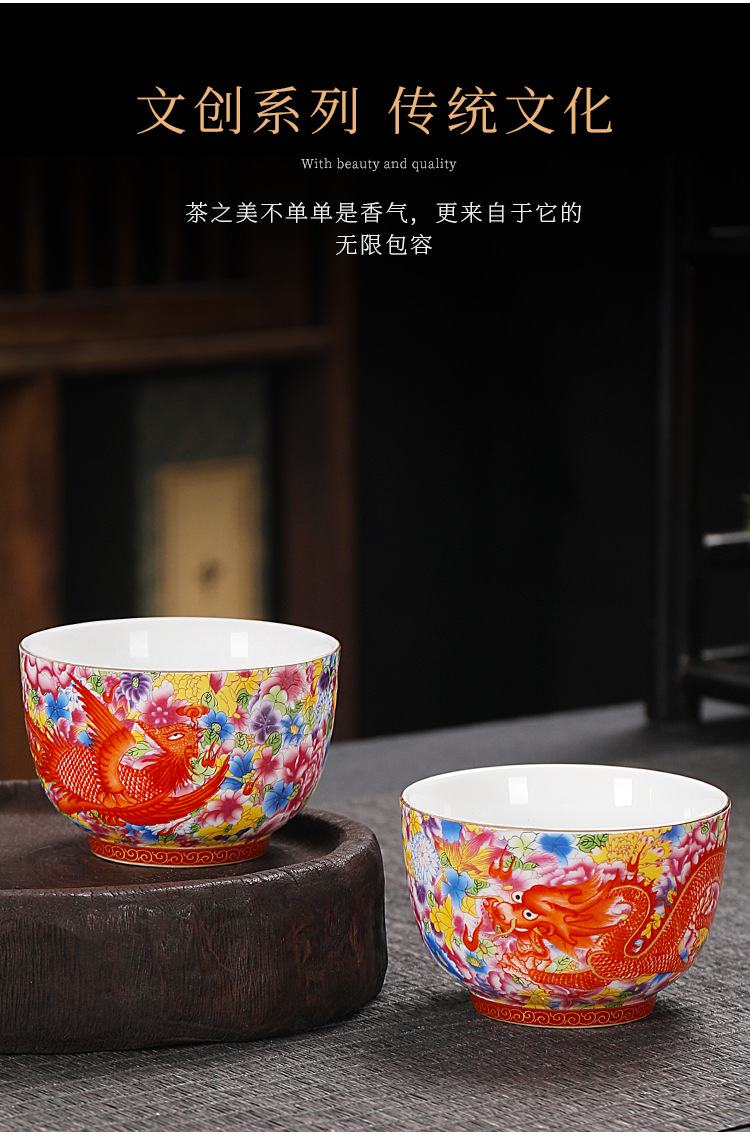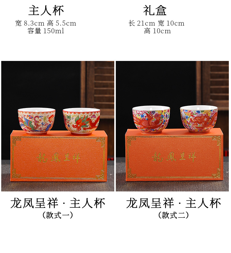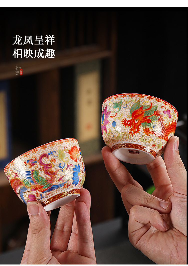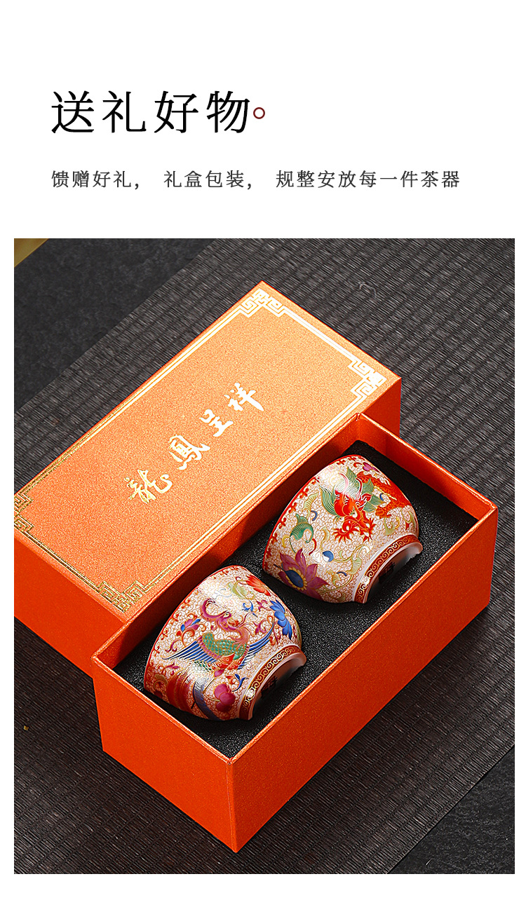 新款珐琅彩茶杯德化掐丝工艺龙凤对杯大容量主人杯高档伴手礼