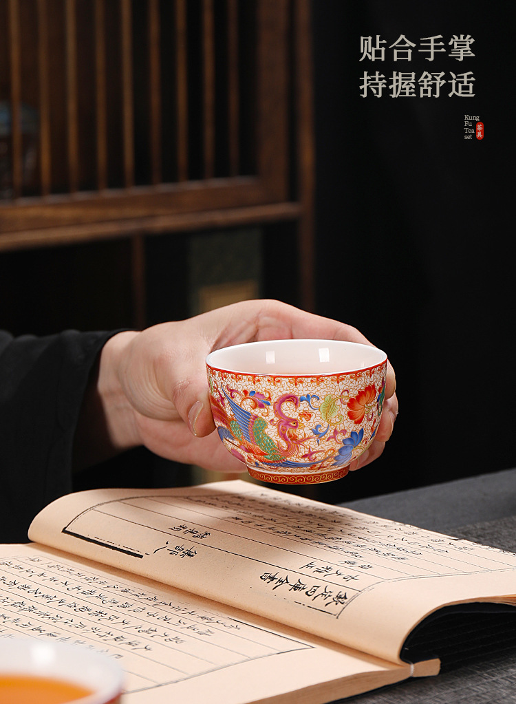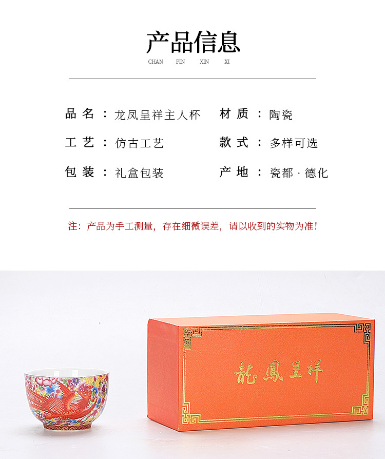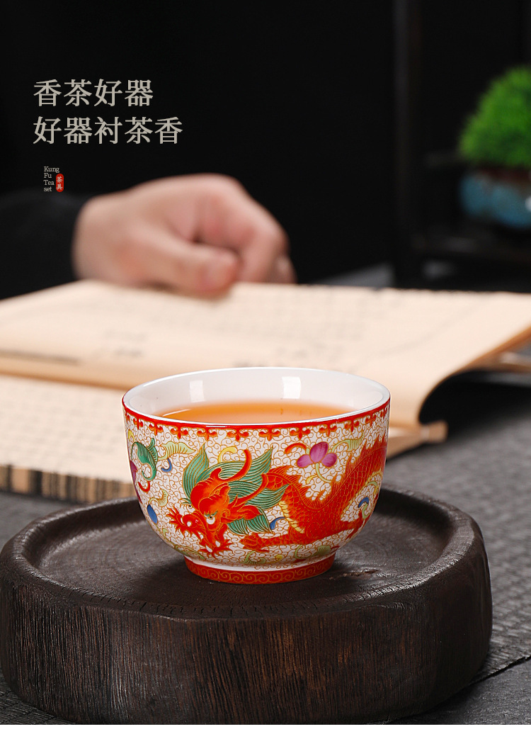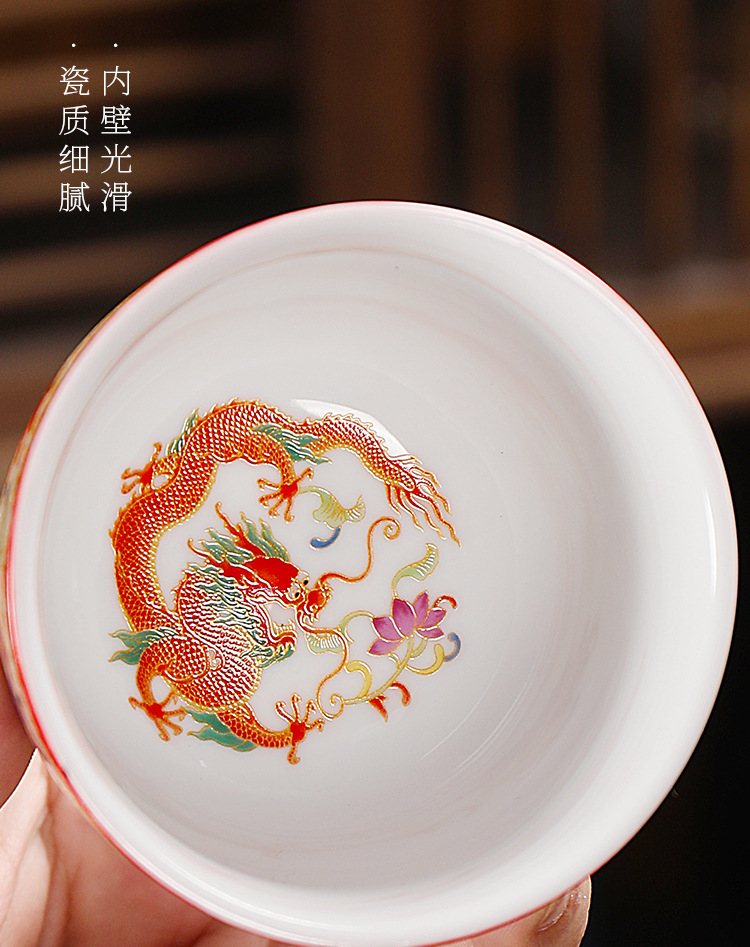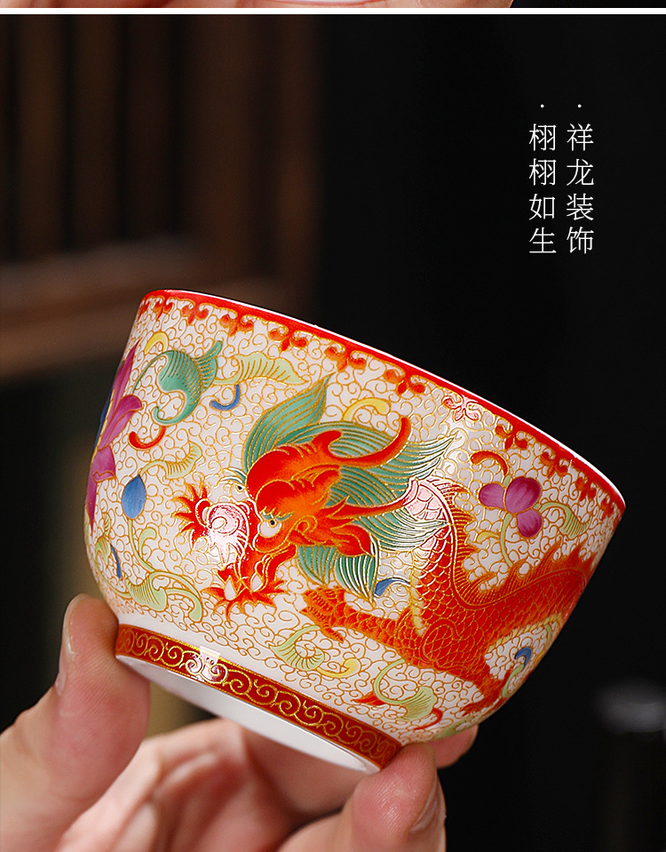 新款珐琅彩茶杯德化掐丝工艺龙凤对杯大容量主人杯高档伴手礼