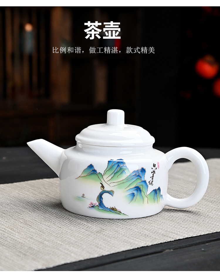 德化白瓷茶壶功夫茶具一壶两杯礼盒羊脂玉瓷主人杯水壶大容量茶壶