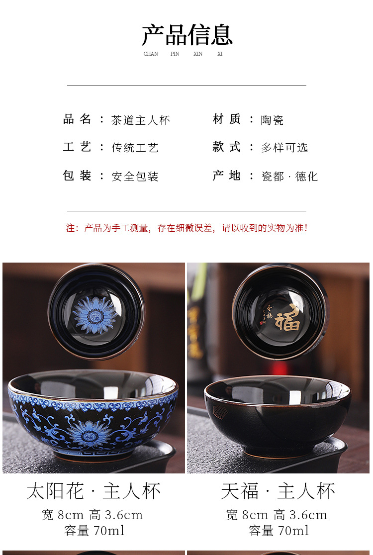 茶杯主人杯木叶盏功夫茶具陶瓷茶盏乌金盏个人专用单杯品茗杯