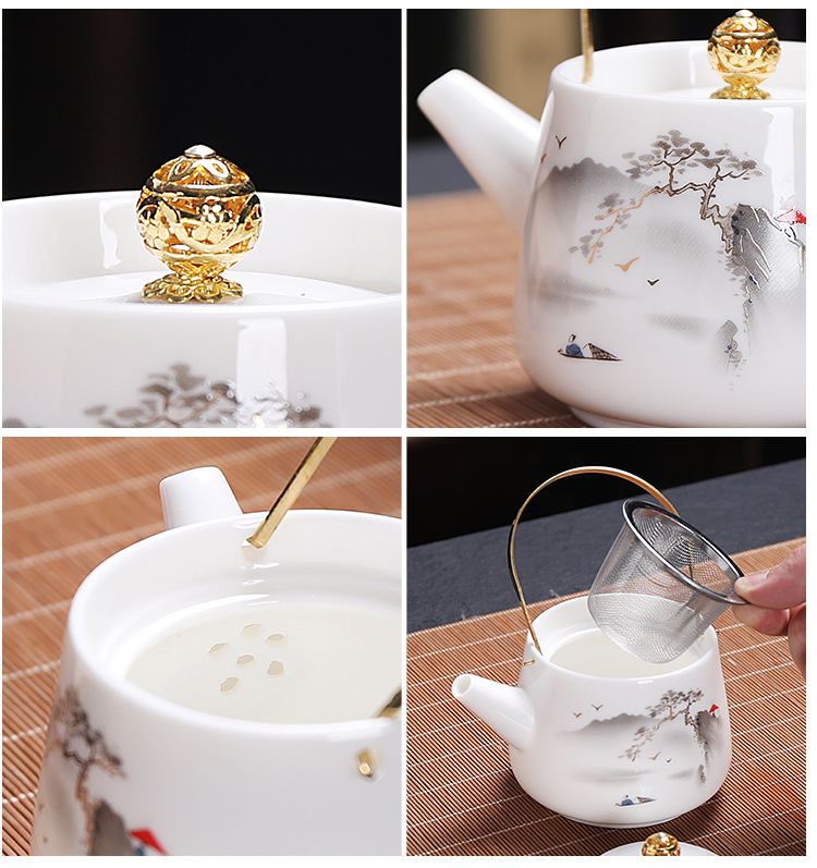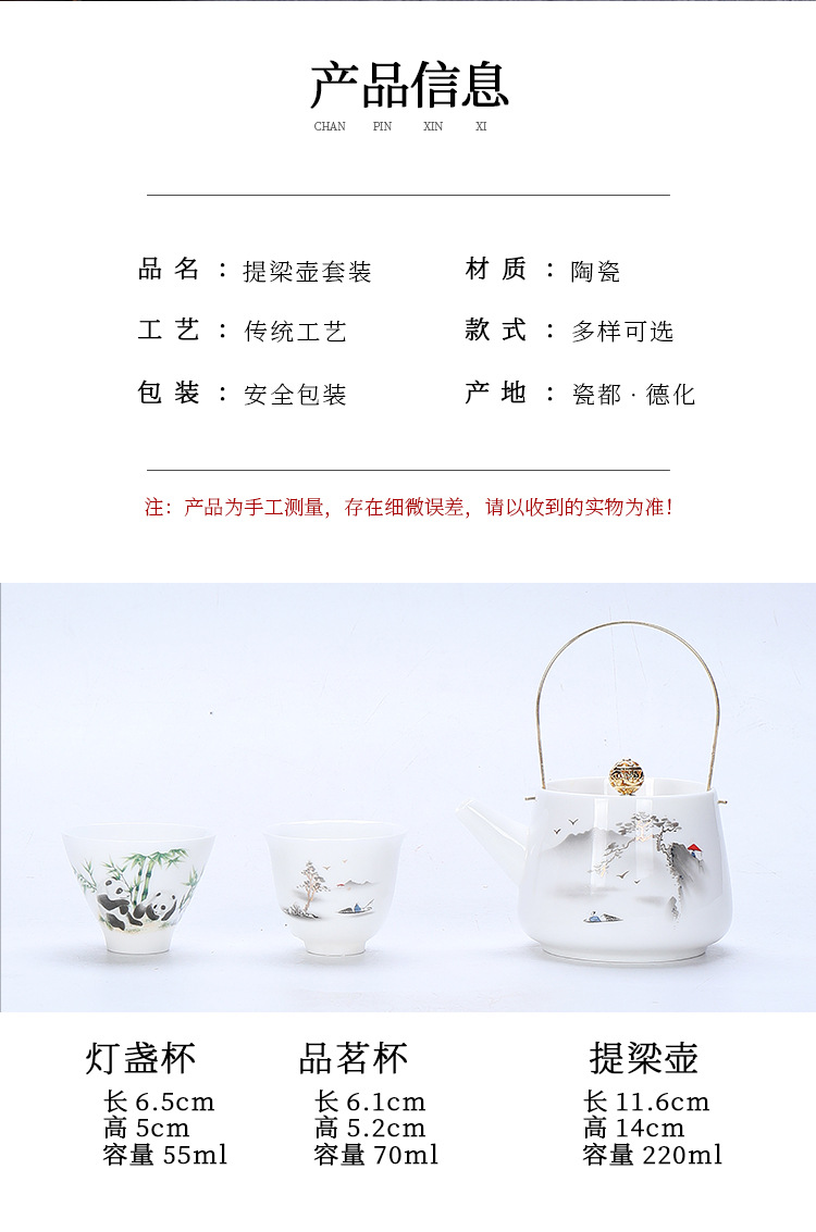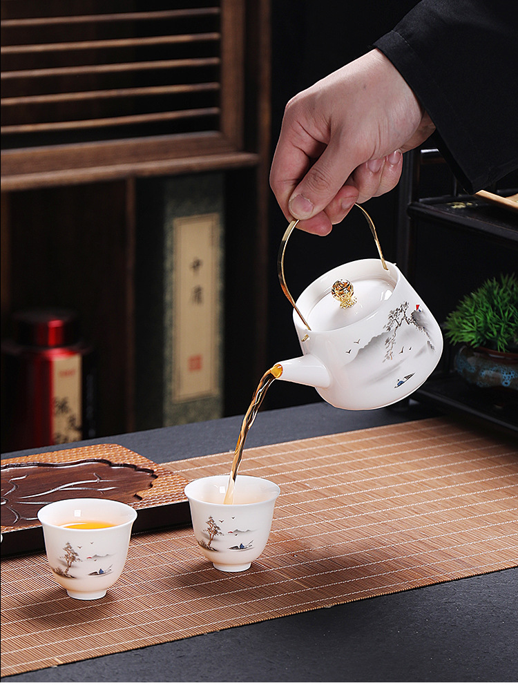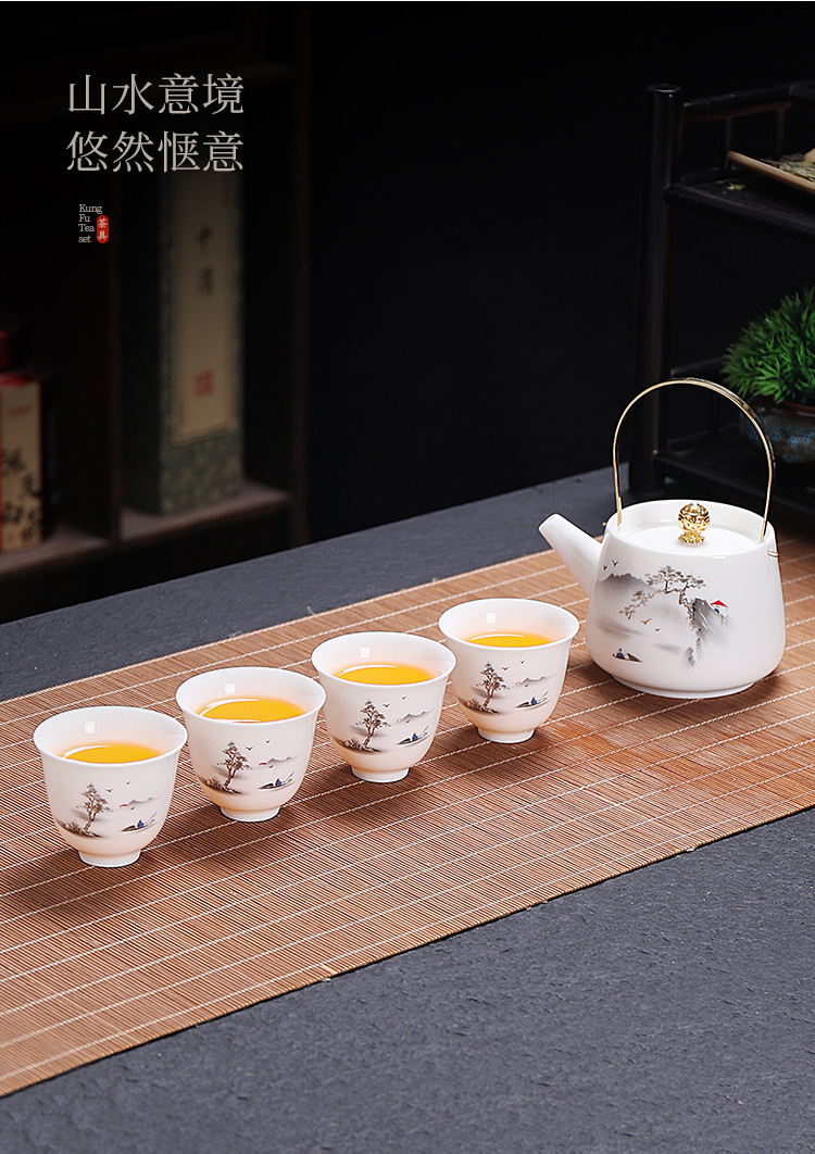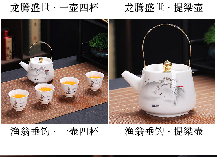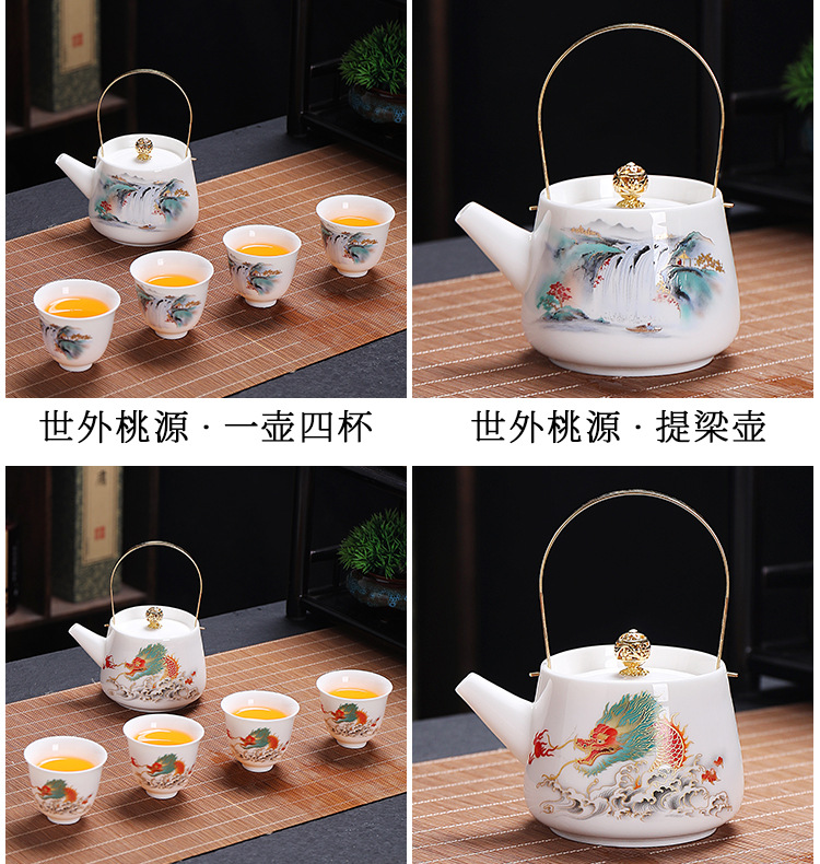 羊脂玉提梁壶一壶四杯单壶家用防烫功夫茶具小号陶瓷茶壶泡茶器