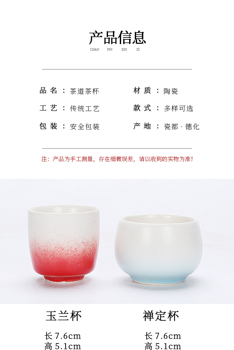渐变主人杯家用客厅个人专用品茗杯中式陶瓷单杯功夫茶具茶盏
