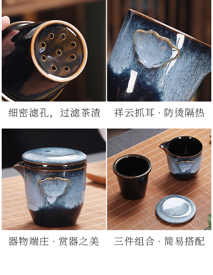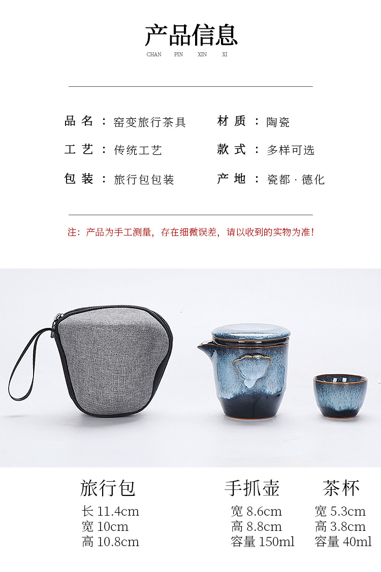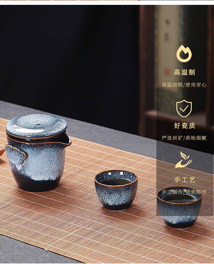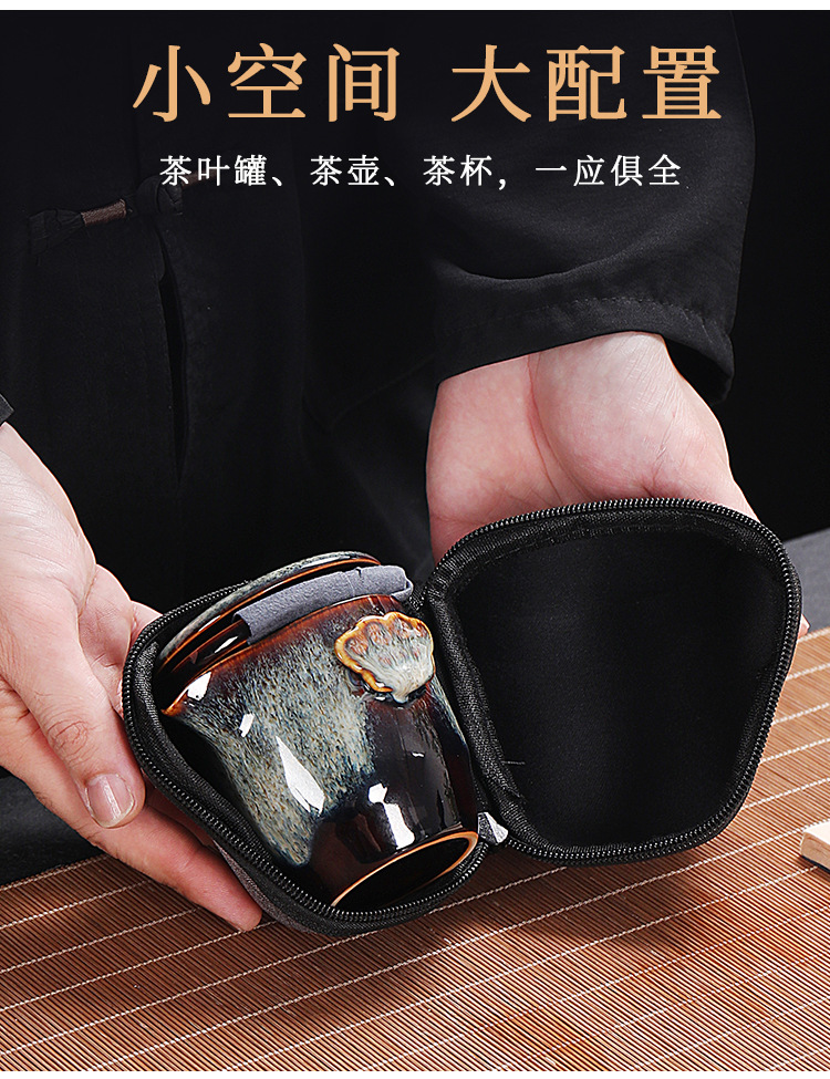 窑变旅行功夫茶具小套装陶瓷一壶两杯家用办公便携式商务礼品