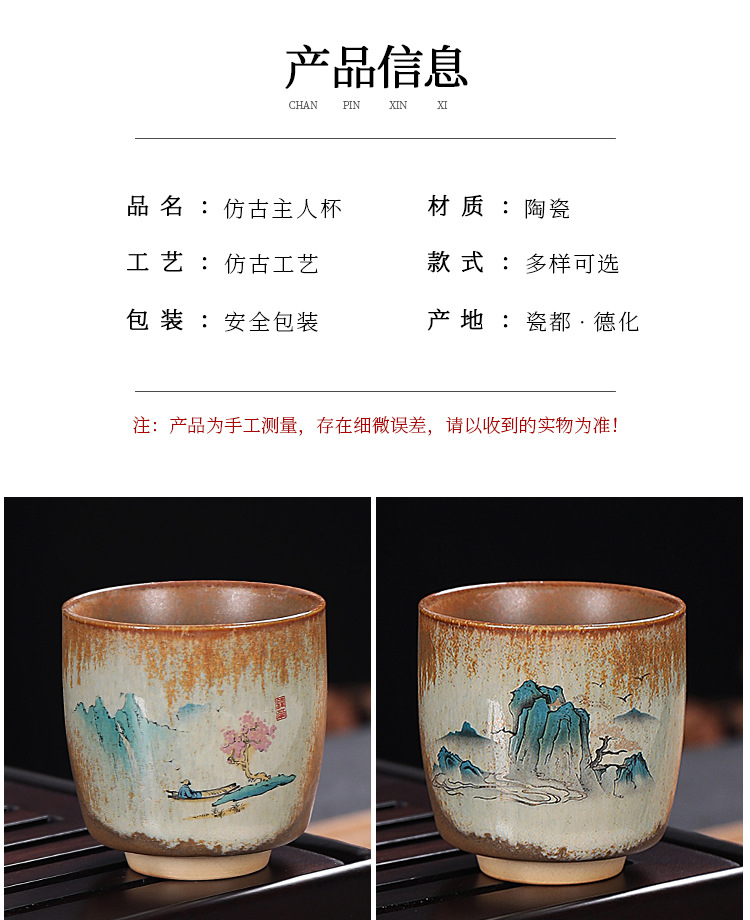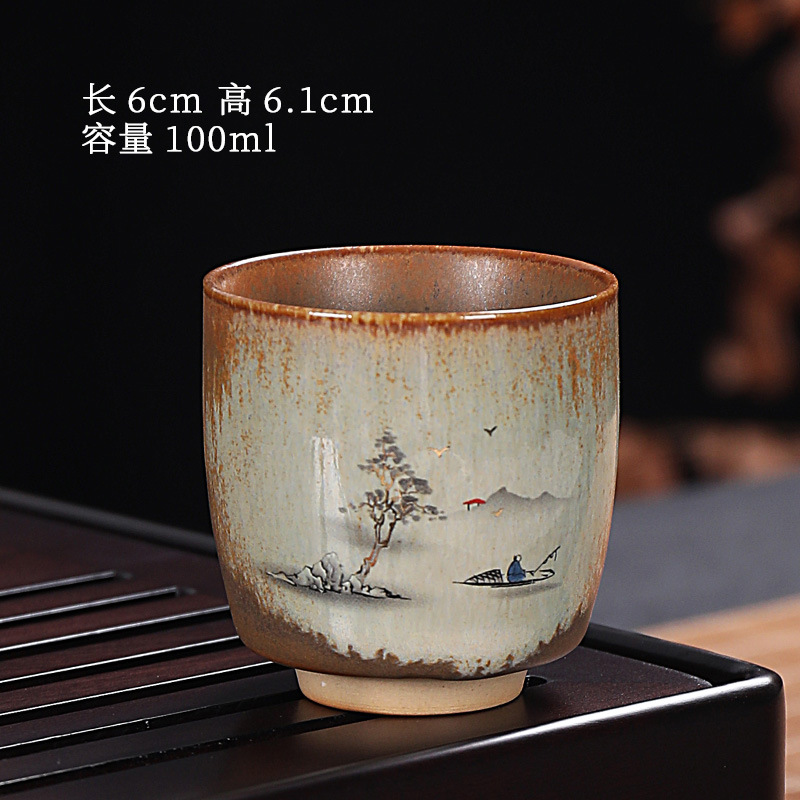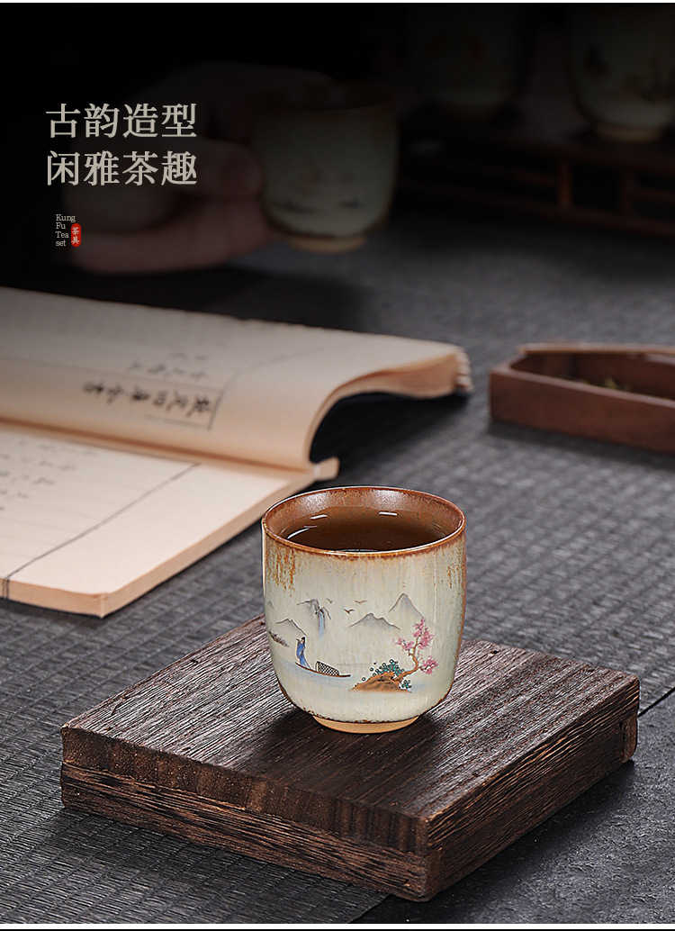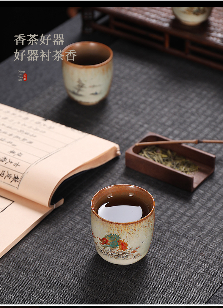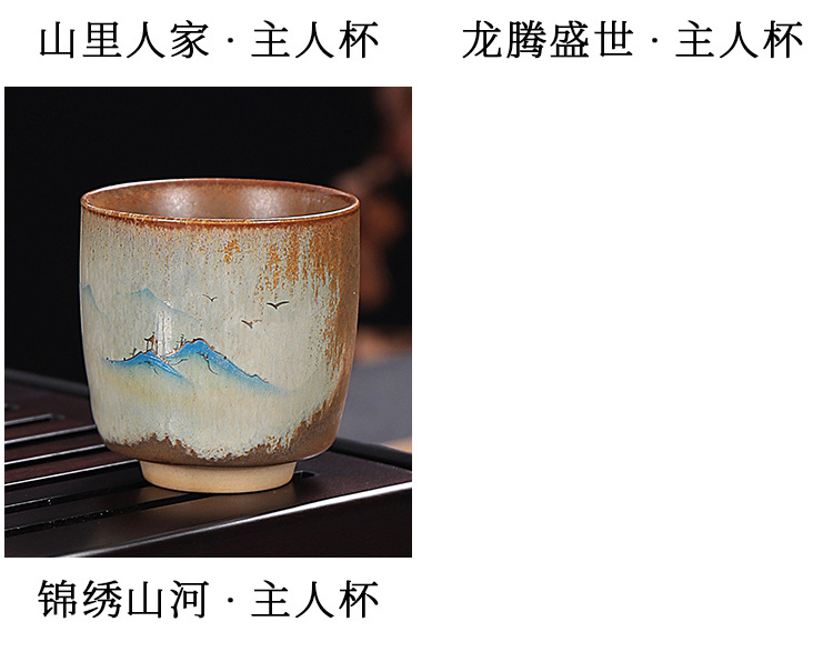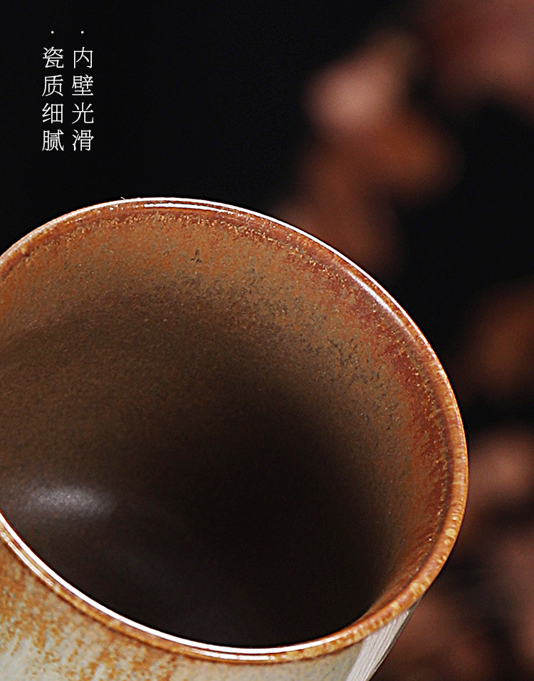 复古仿柴烧主人杯中式功夫茶杯家用轻奢会客泡茶杯高端主人杯喝茶